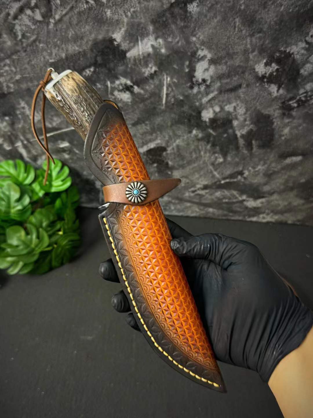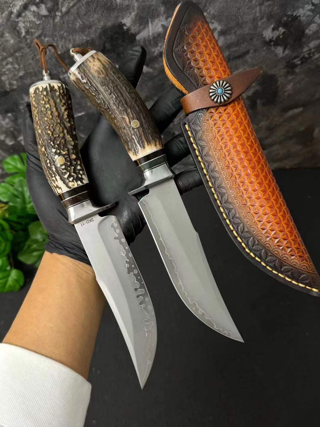 Chất liệu: Đầu thép 440C + gạc nai tự nhiên nguyên khối