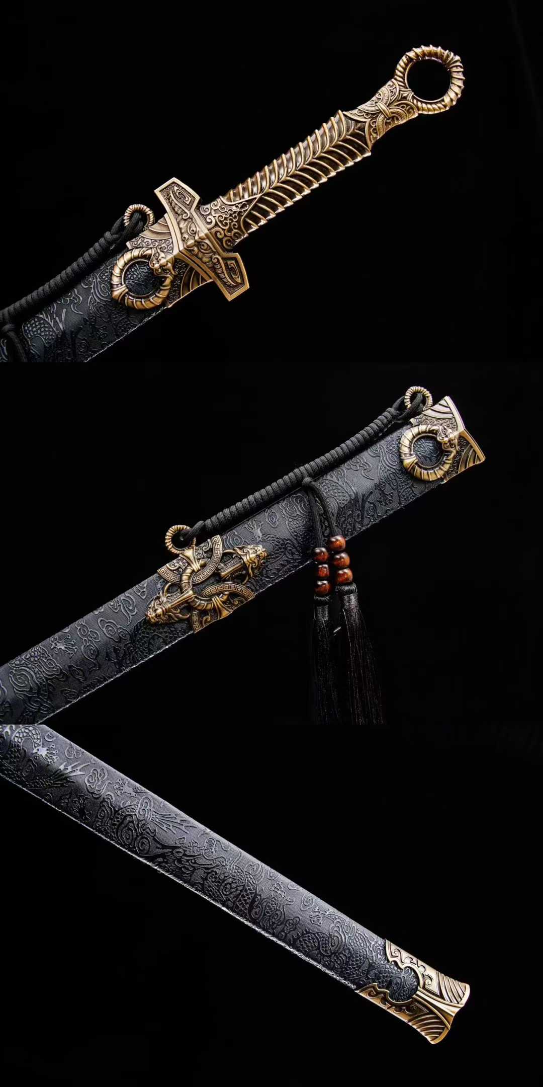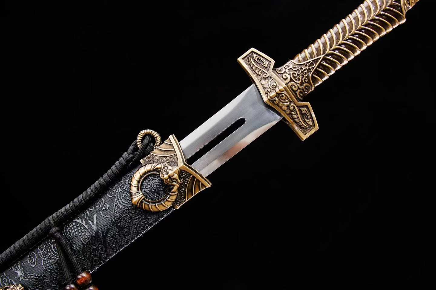 Vỏ kiếm: Gỗ tự nhiên bọc da sang trọng