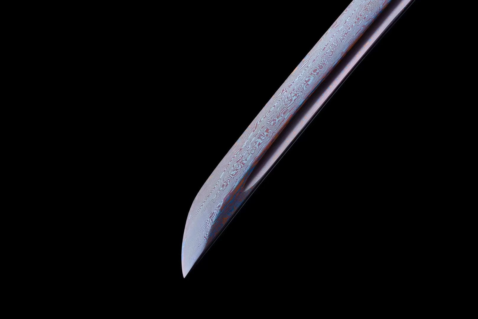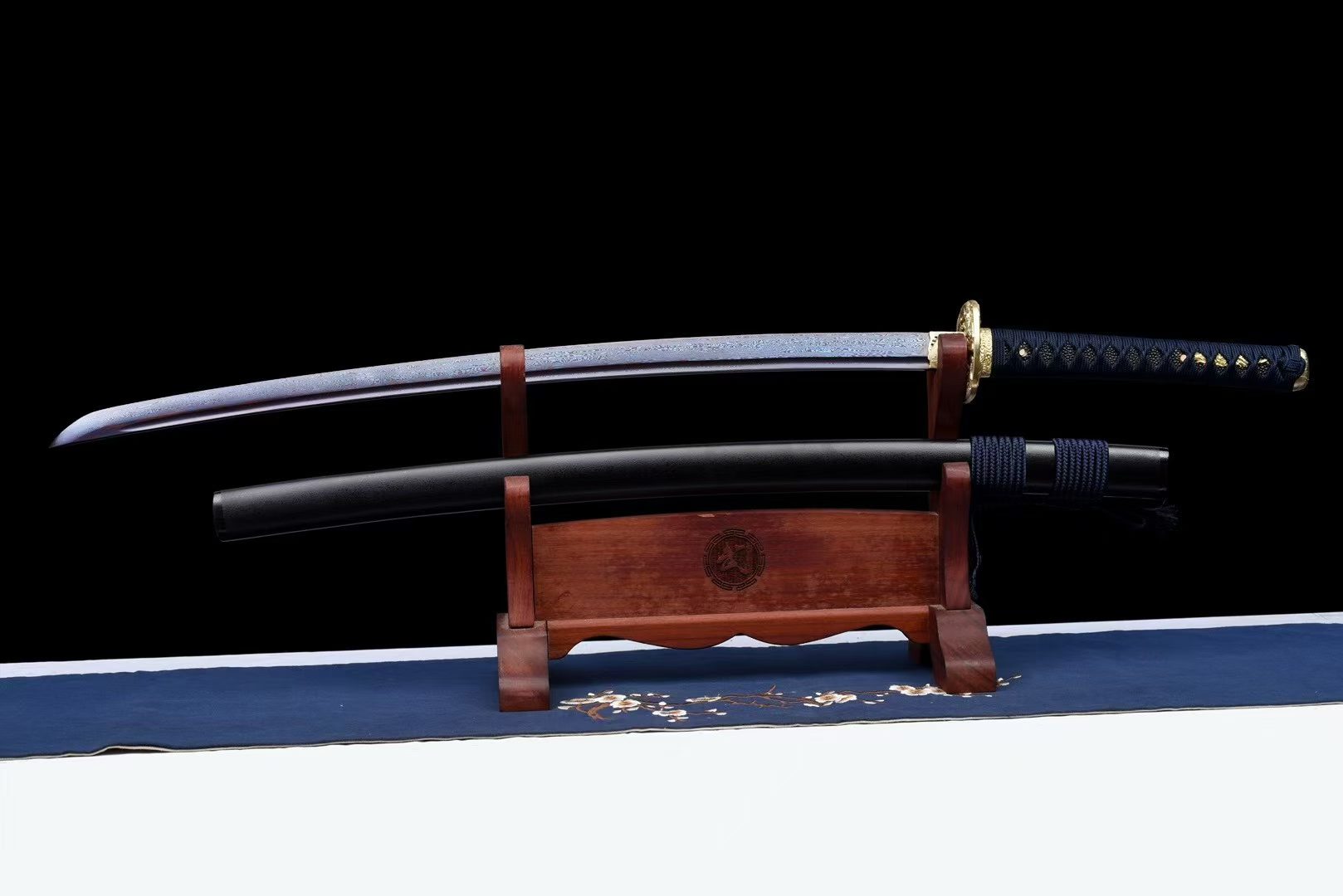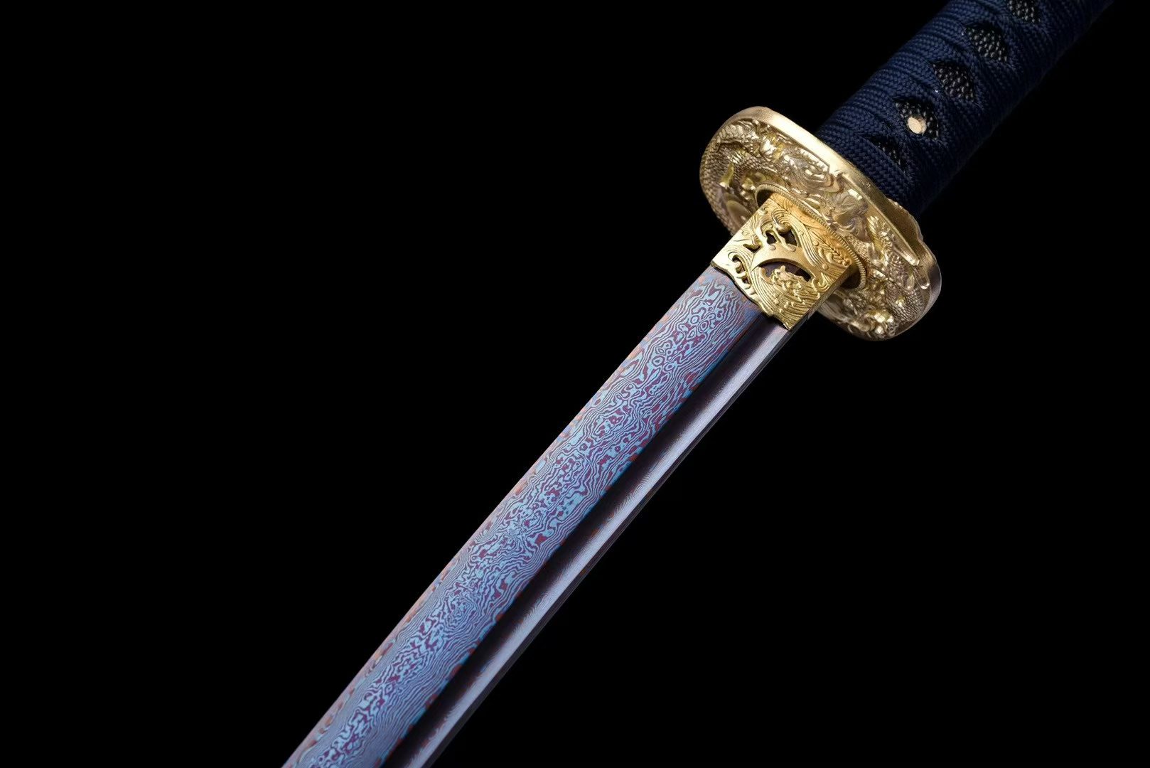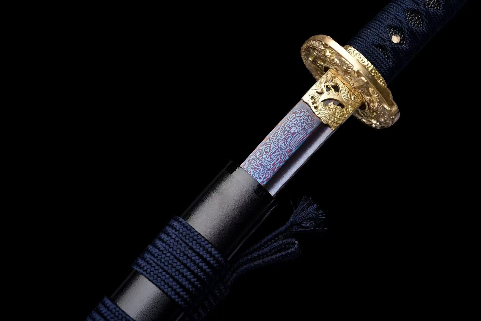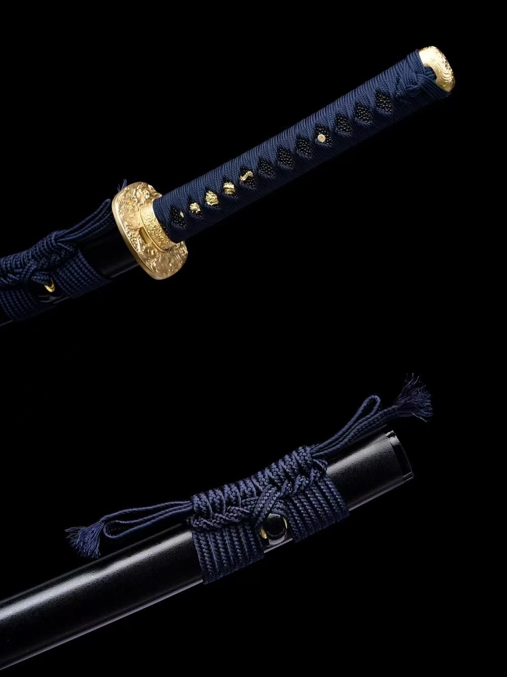 Katana Samurai Long Diêm Võ Sĩ – Thép Hoa Văn Nung Xanh, Đồng Nguyên Khối, Siêu Cứng & Bền Bỉ