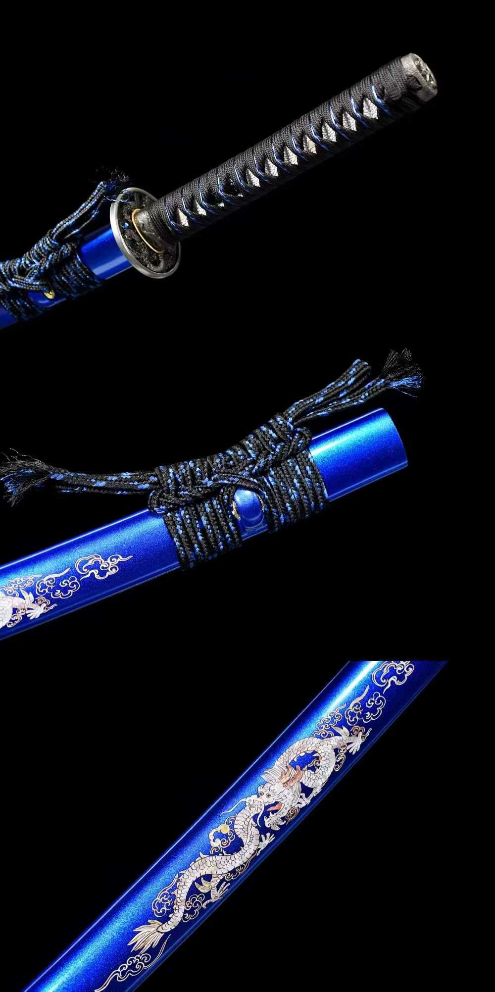 Vỏ kiếm: Gỗ sơn mài cao cấp, trang trí song long, đi kèm sageo Nhật tinh xảo