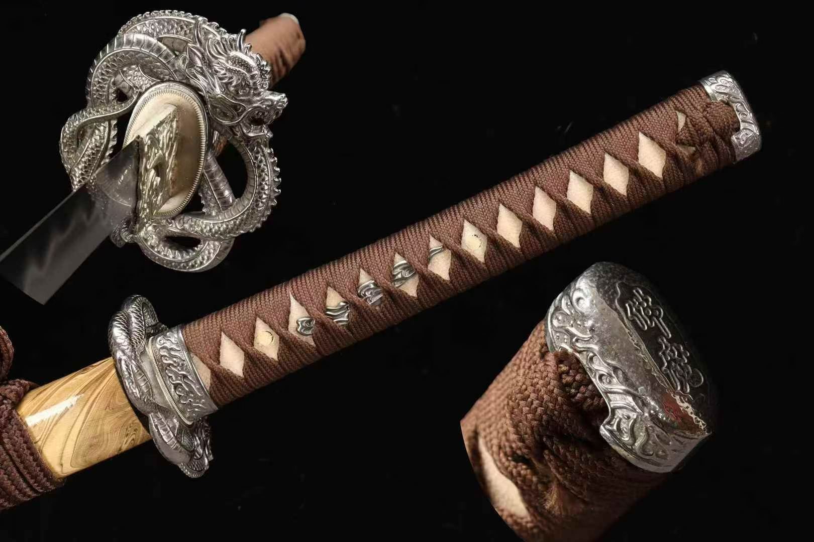 Kiếm Katana Nhất Niệm Võ Sĩ 26 inch được rèn từ thép carbon công cụ T10 cao cấp, cho độ cứng cao và độ dẻo dai vượt trội. Lưỡi áp dụng kỹ thuật phủ đất tôi lưỡi truyền thống, kết hợp quy trình mài nền cơ bản và mài hoàn thiện phong cách Nhật Bản, tạo hiệu ứng vân sóng nước trắng rõ nét, bề mặt sáng sạch, hiệu ứng phản quang mạnh, tăng giá trị thẩm mỹ khi trưng bày.