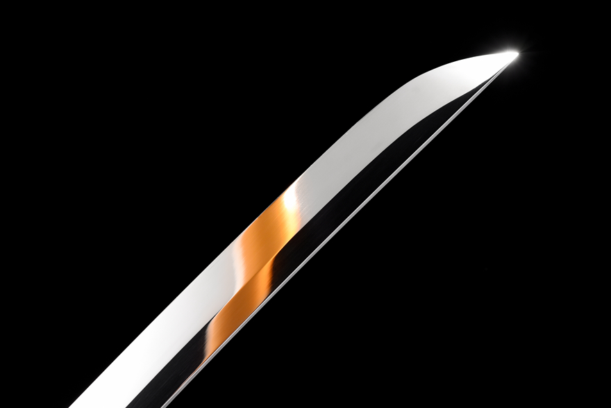 Chất liệu lưỡi: Lưỡi kiếm được chế tác từ thép lò xo hiệu năng cao, nổi bật với bề mặt mài gương sáng bóng giúp tăng khả năng cắt và giảm ma sát khi sử dụng.