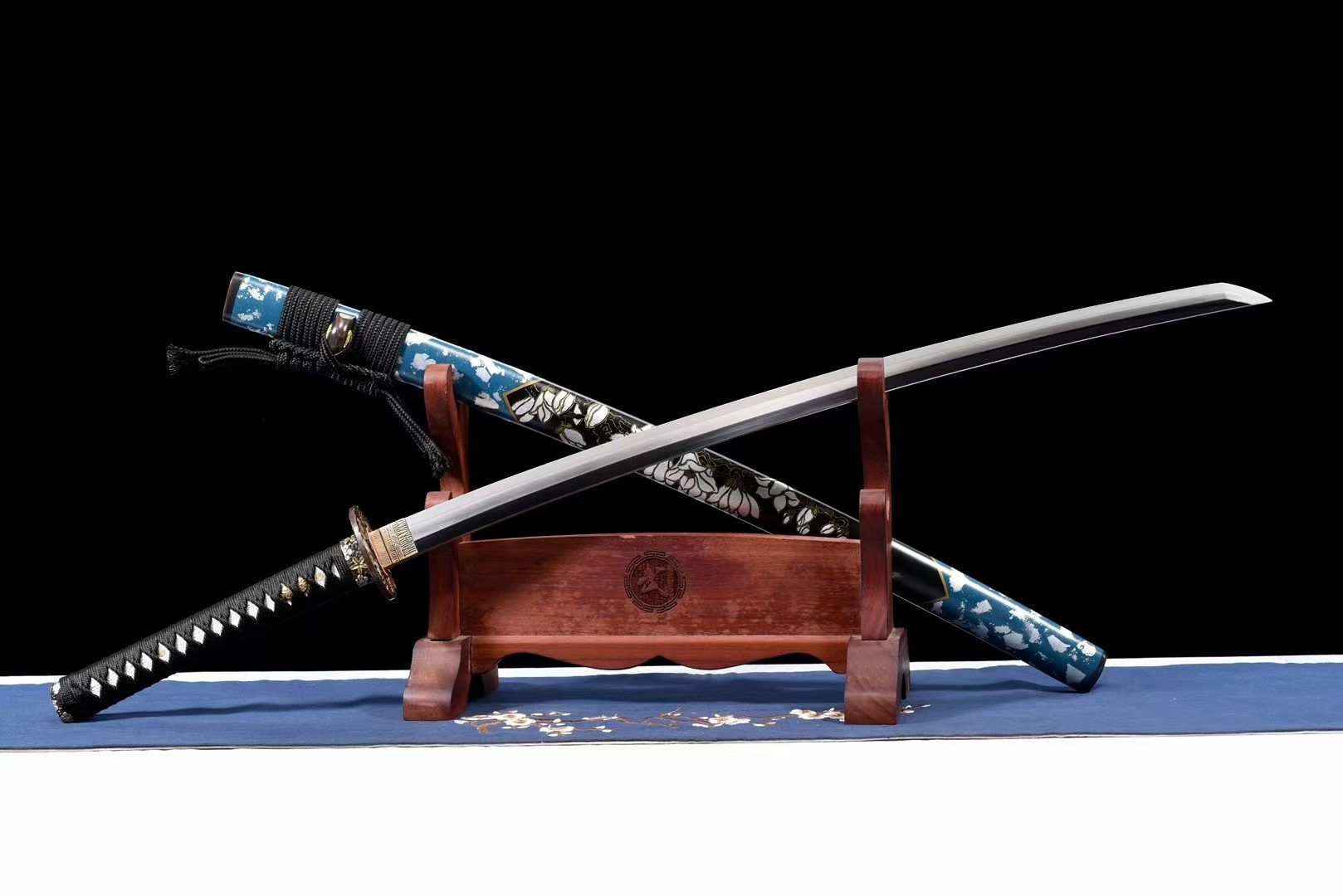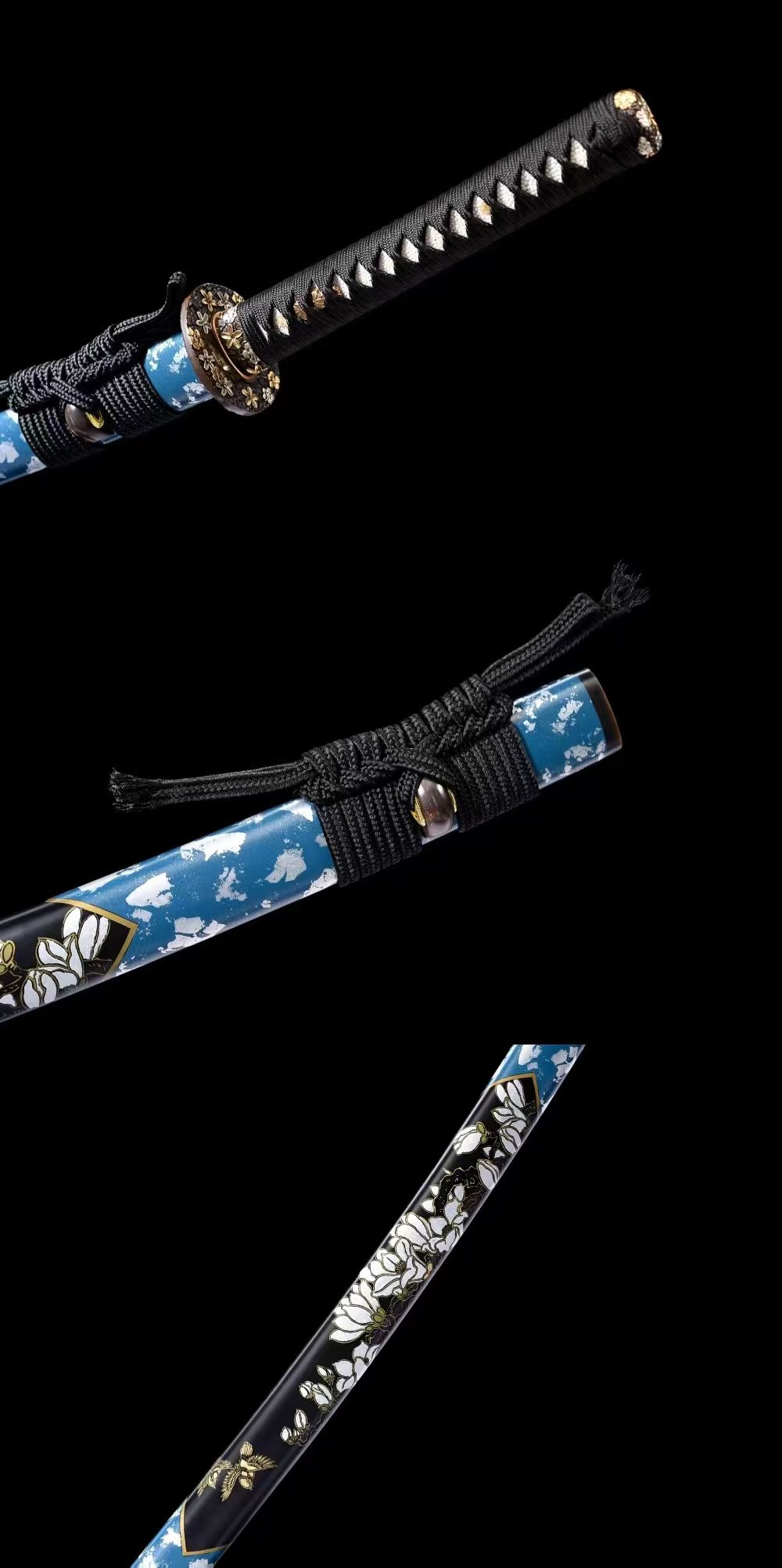 Katana “Bạch Ngọc Lan” là tuyệt phẩm kiếm samurai cao cấp, được chế tác hoàn toàn thủ công từ thép hoa văn bách luyện gấp lớp, kết hợp kỹ thuật tôi lưỡi đắp đất truyền thống, mang lại độ sắc bén và độ bền vượt trội.