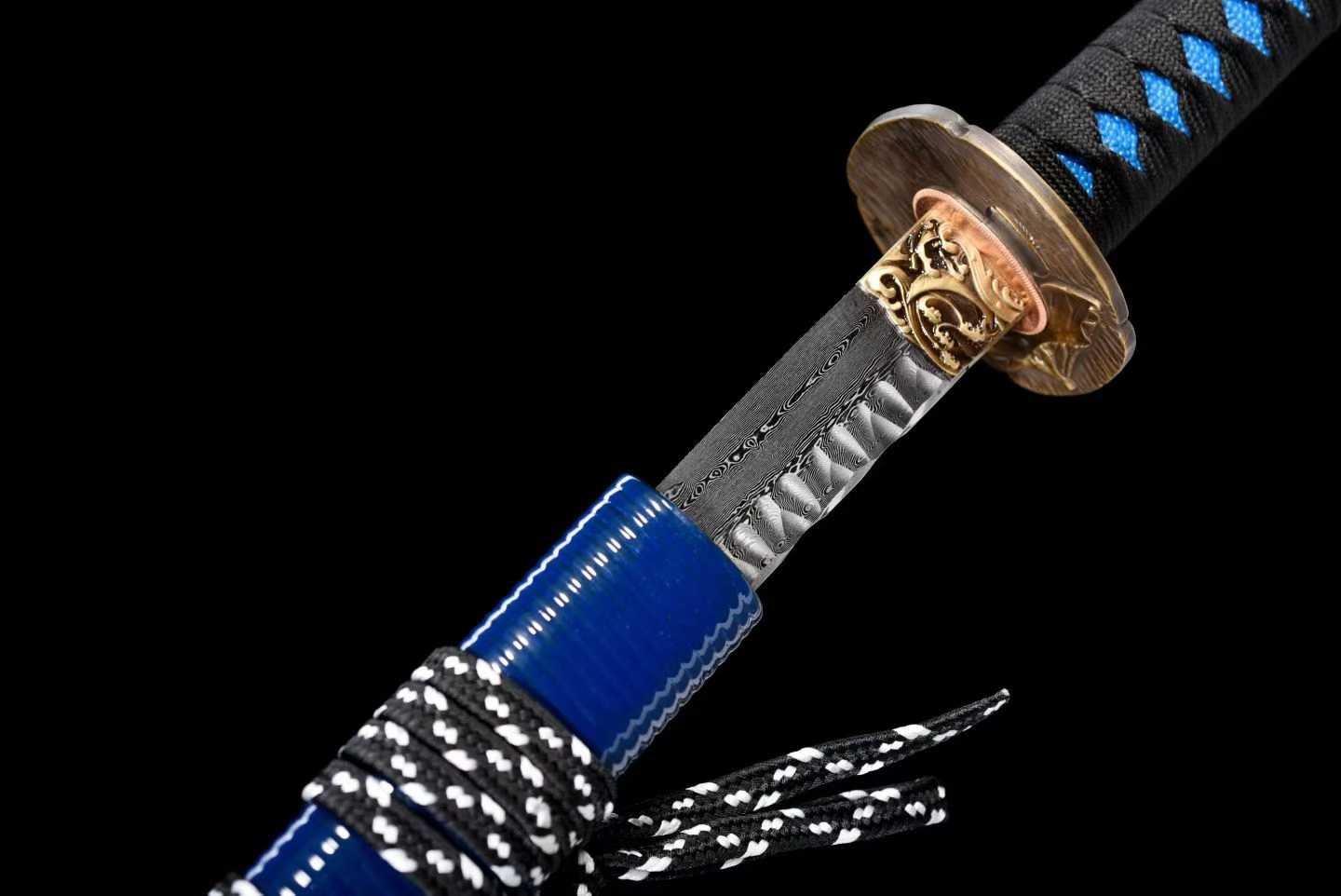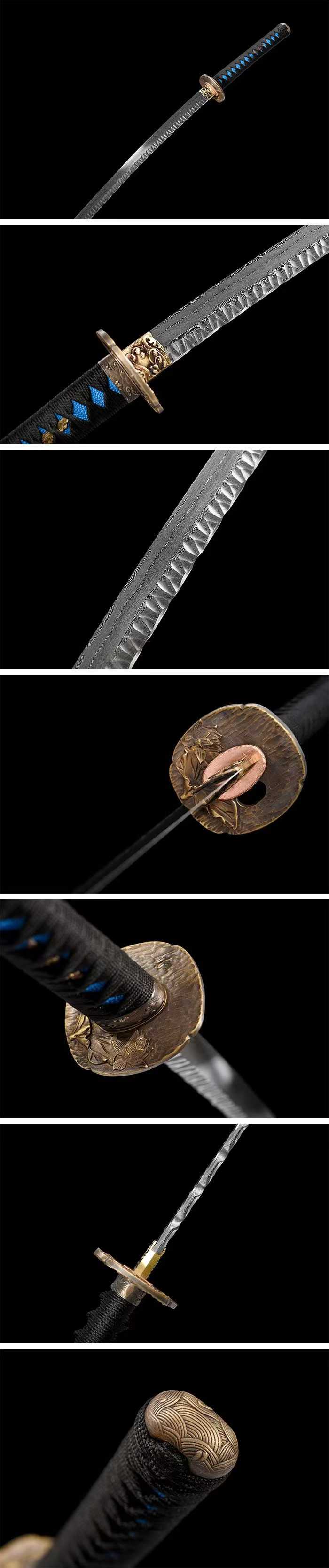 Dòng kiếm: Katana chiến đấu – Rèn từ thép gấp hoa văn thủ công, đập đá tạo vân đá cổ điển, mang đậm khí chất võ sĩ đạo