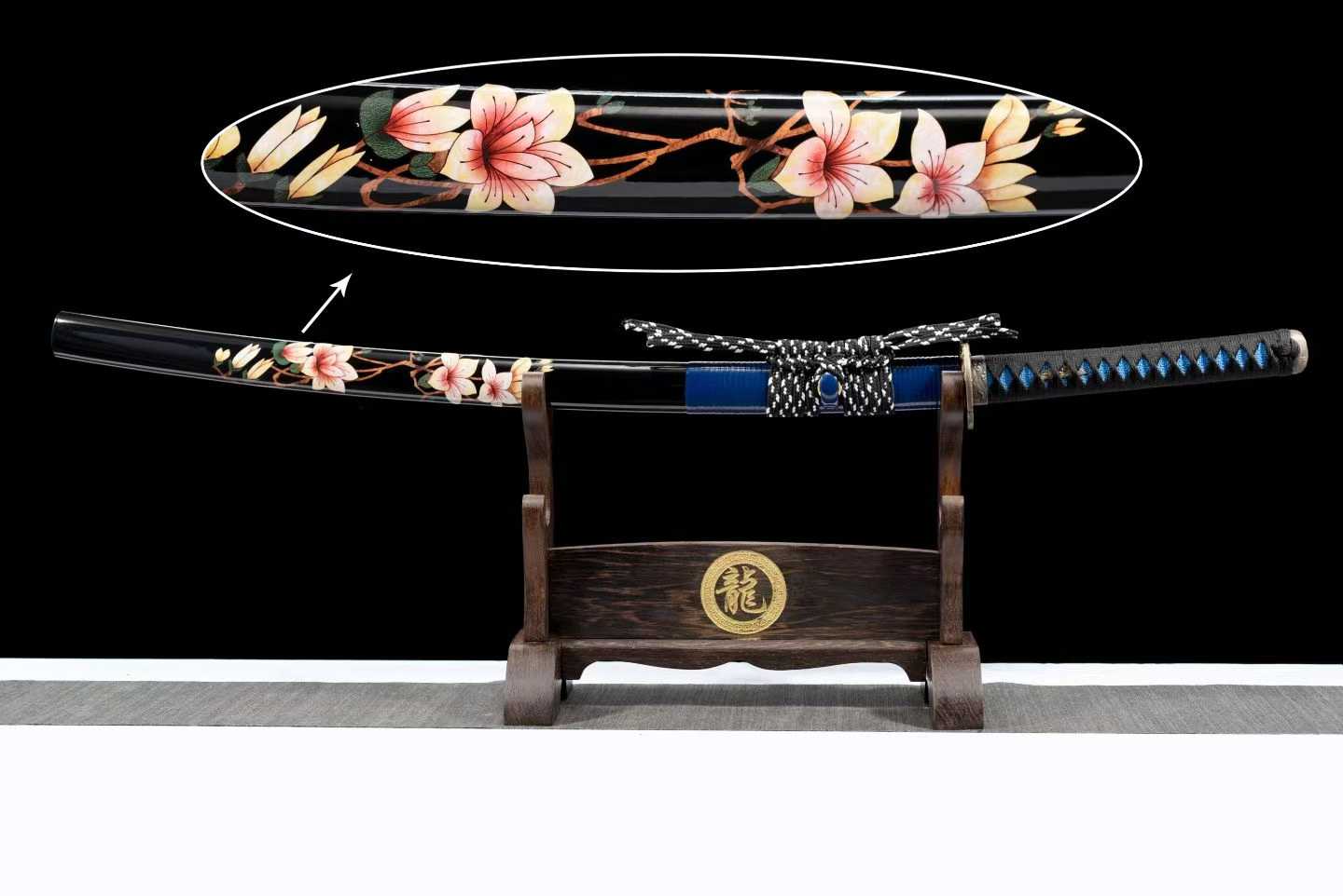 ???? “Mạc Thượng Hoa Khai” – Không chỉ là một thanh kiếm, mà là biểu tượng của sự nở rộ trong nghịch cảnh. Với kỹ thuật gấp thép trăm lần, rèn tay tạo vân đá cổ, kết hợp chuôi cứng cáp và vỏ sơn mài họa tiết hoa đầy nghệ thuật – đây là tuyệt phẩm dành cho người yêu văn hóa kiếm Nhật sâu sắc.