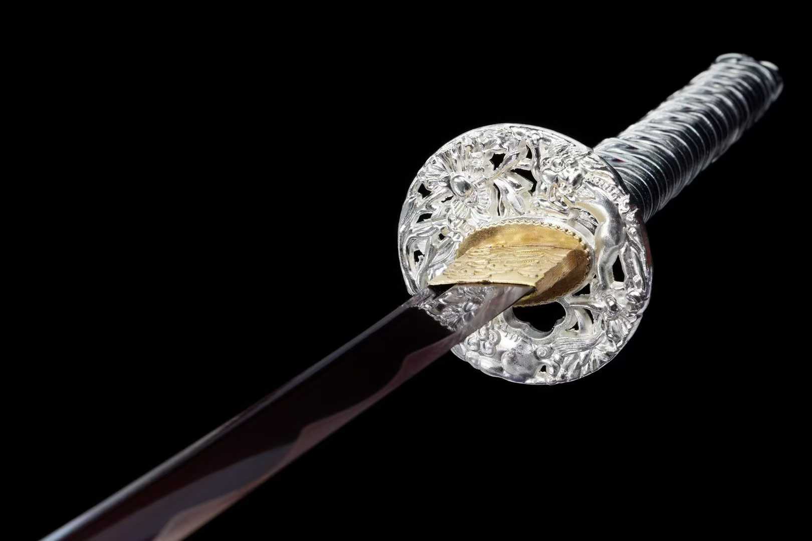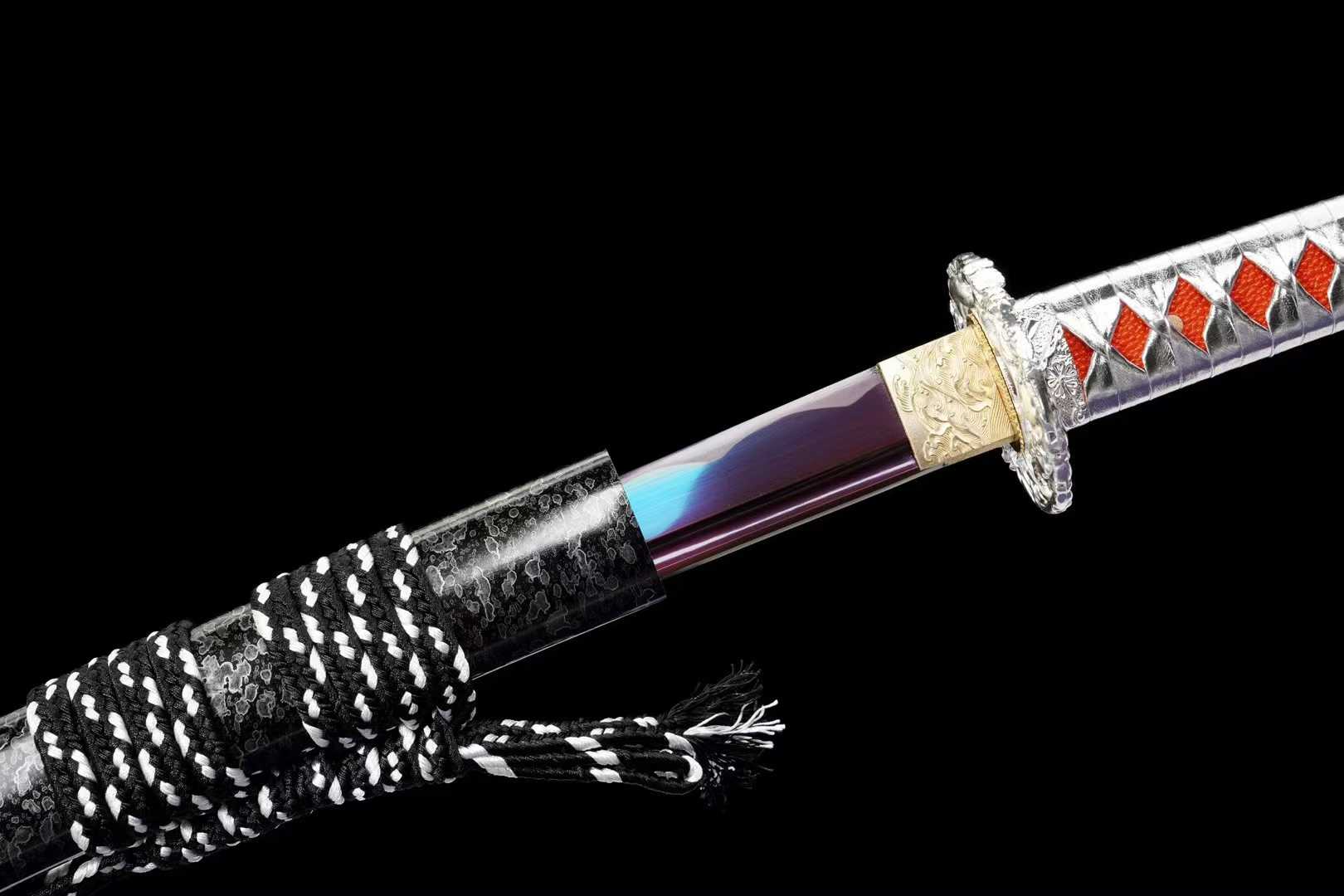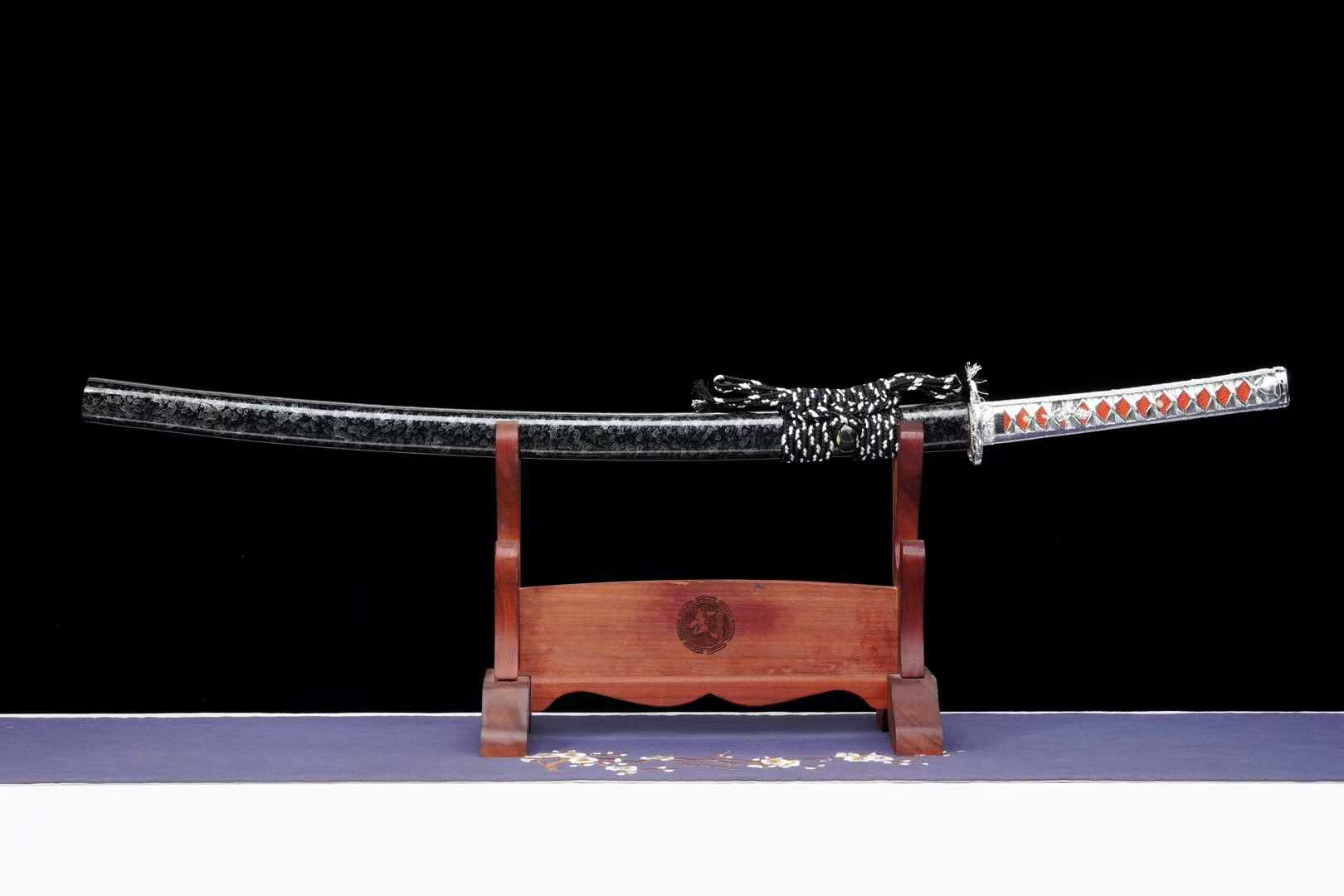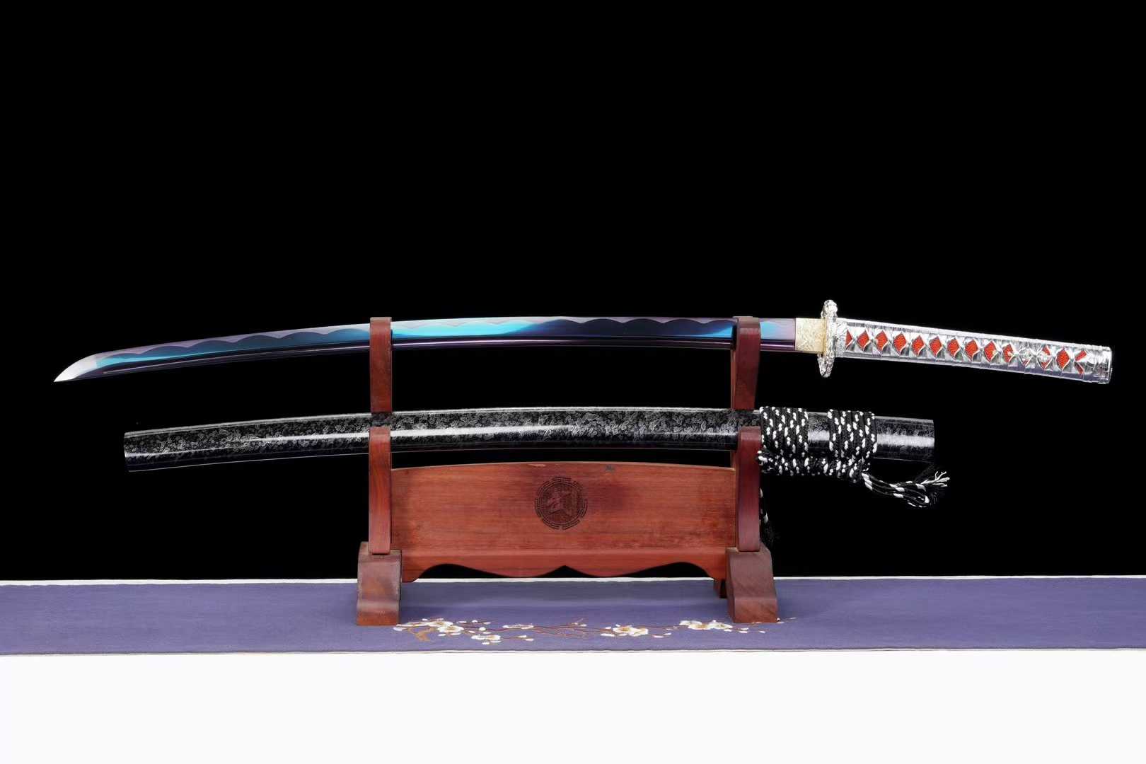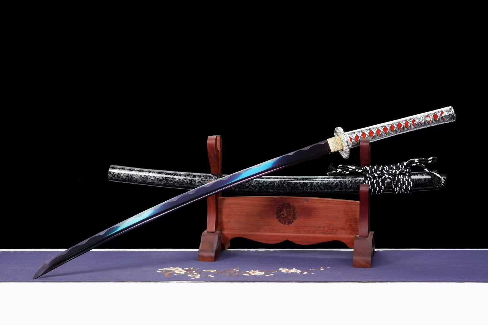 Kiếm Nhật Katana Thiên Tịch được chế tác từ thép trung carbon, xử lý theo công nghệ nung tím cổ điển, mang màu sắc sang trọng, bền bỉ, tăng khả năng chống oxy hóa và giữ độ bền lưỡi lâu dài. Kiếm có thiết kế cân đối, phù hợp cho sưu tầm, trưng bày, luyện tập võ thuật hoặc làm quà tặng cao cấp.