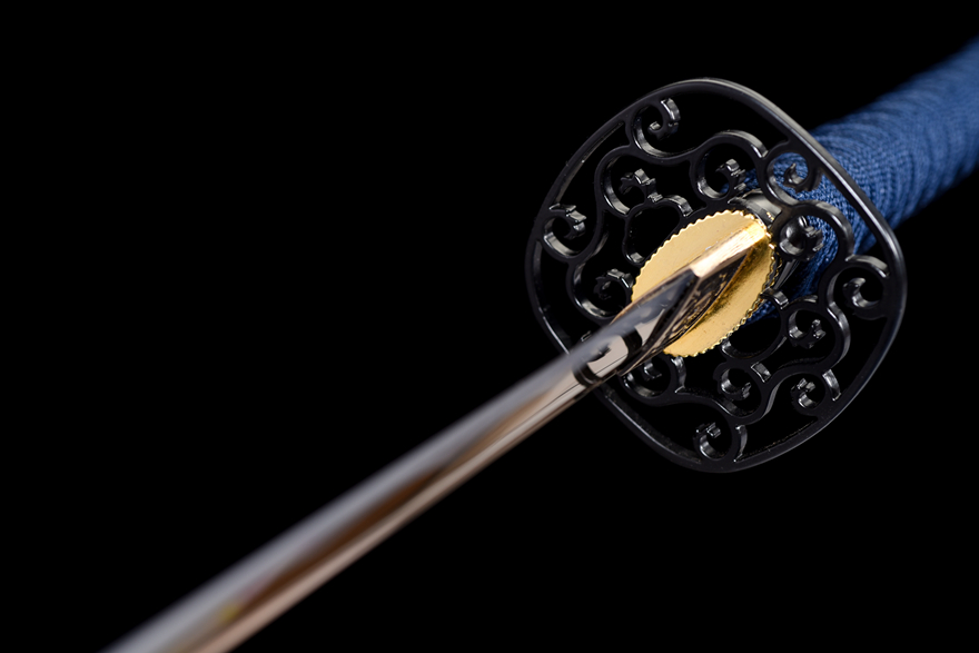 Lưỡi kiếm: Thép carbon trung cấp, xử lý công nghệ mạ vàng, mang lại vẻ đẹp ấn tượng và sự sắc bén tuyệt vời.
