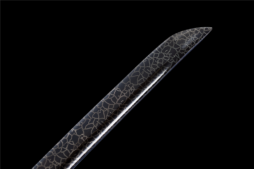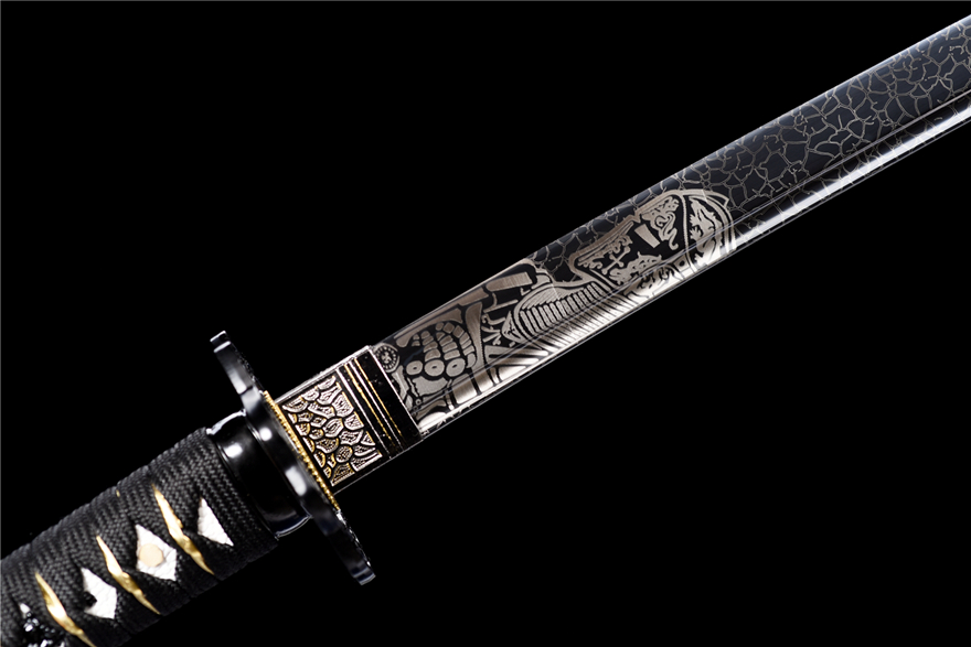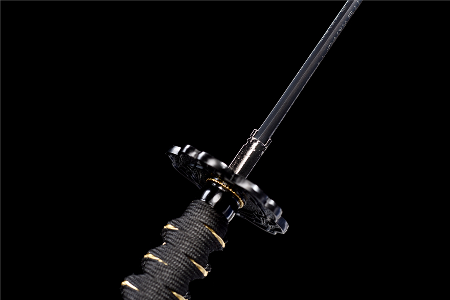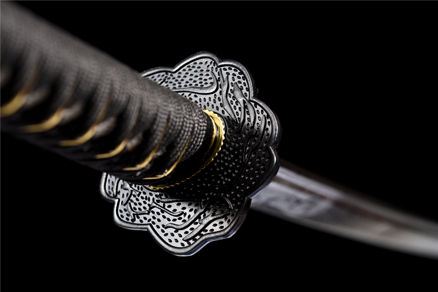 Chất liệu lưỡi: Lưỡi kiếm được chế tạo từ thép trung carbon cao cấp, rèn thủ công với công nghệ phun đen và khắc hoa văn tinh xảo, tạo ra lưỡi kiếm sắc bén và bền bỉ. Công nghệ này không chỉ tăng cường tính thẩm mỹ mà còn nâng cao độ bền cho lưỡi kiếm.