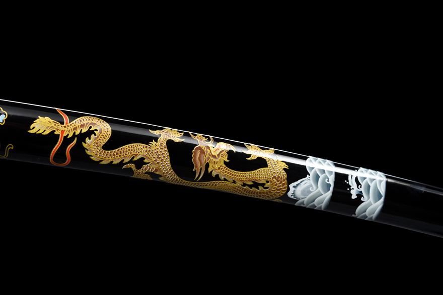 Vỏ kiếm: Gỗ thật phủ sơn mài, tạo vẻ ngoài sang trọng và bảo vệ tốt cho lưỡi kiếm