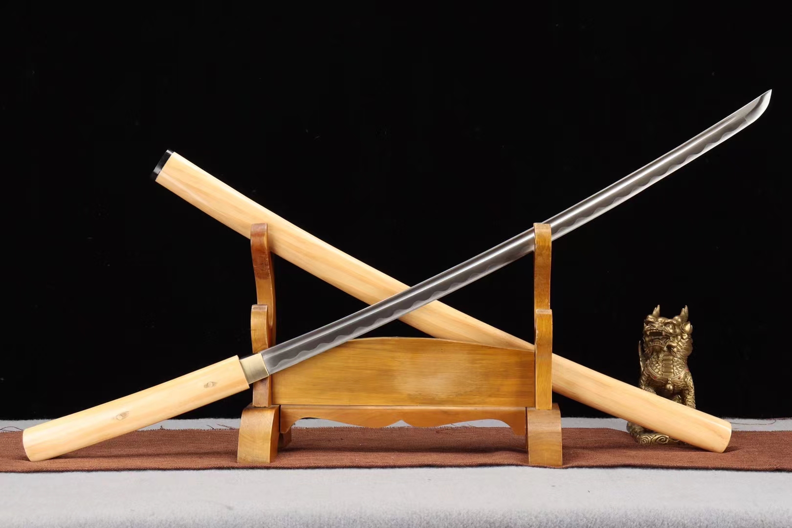 Lưỡi kiếm làm từ thép 45#, được tôi luyện và rèn thủ công với quy trình truyền thống của kiếm Nhật