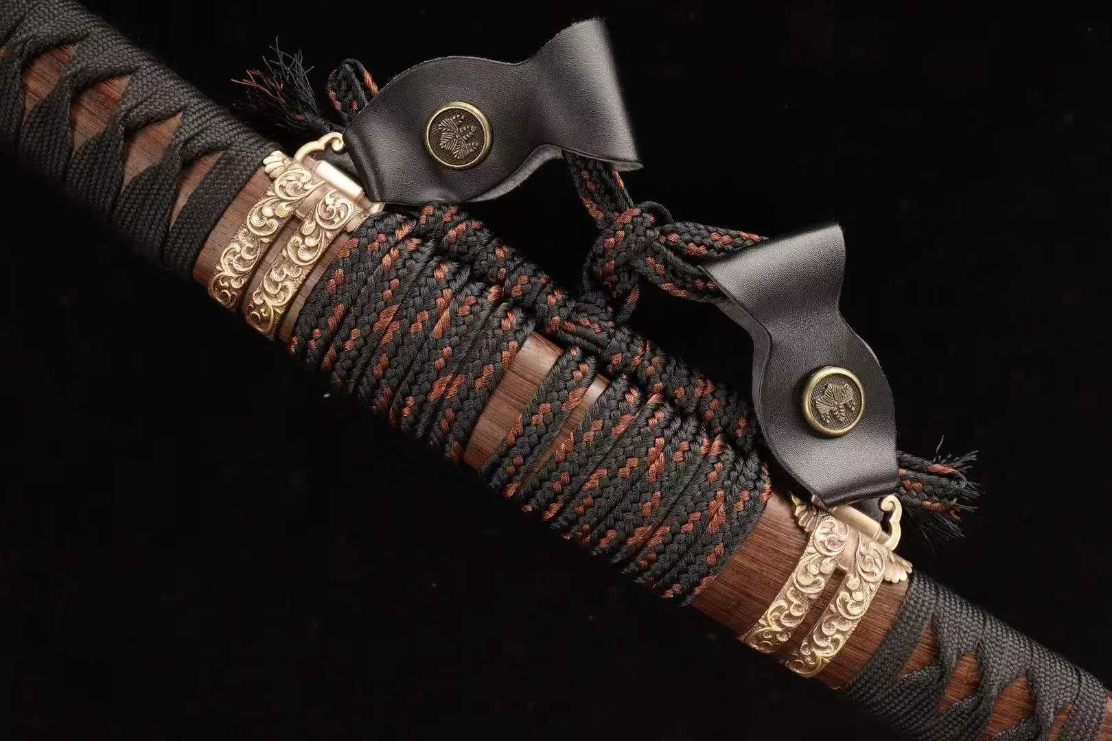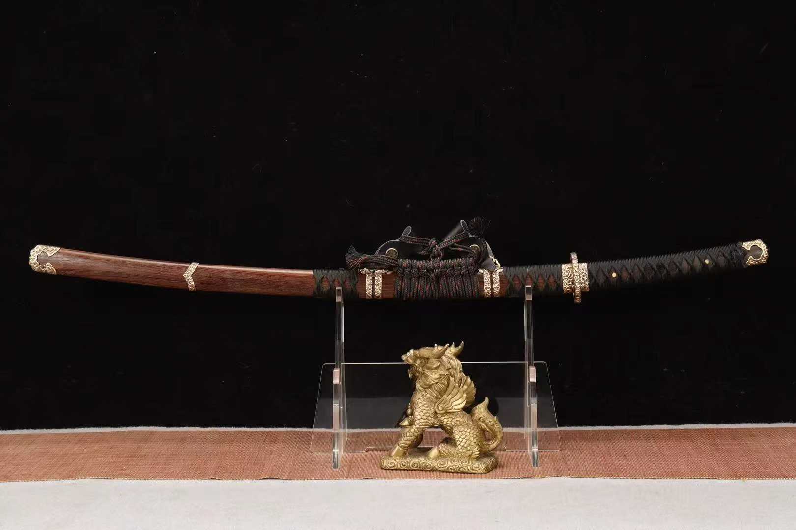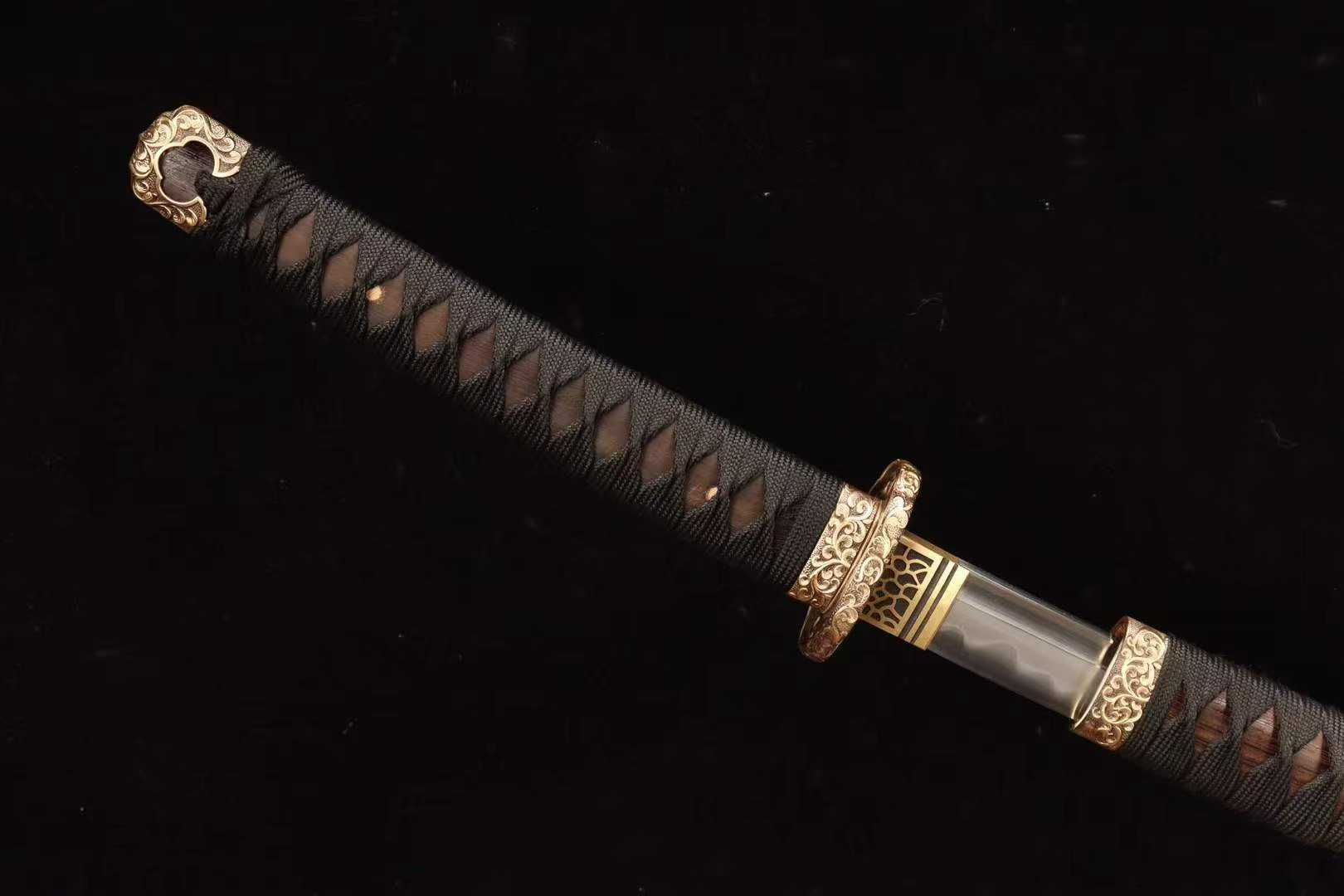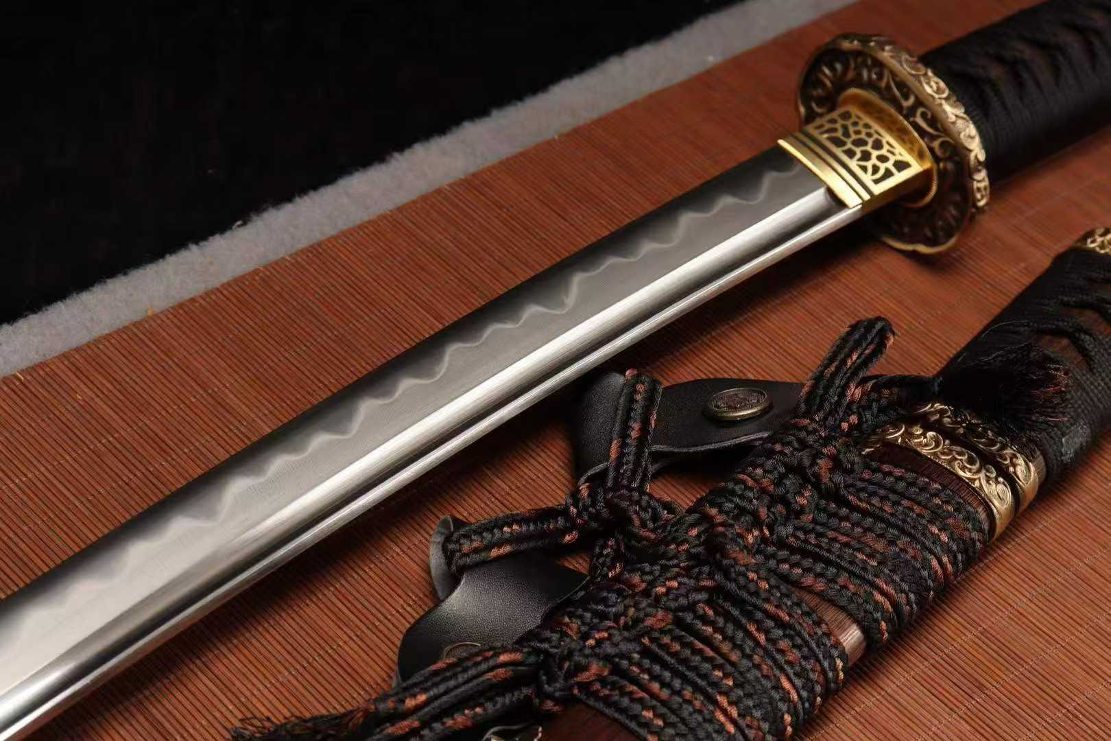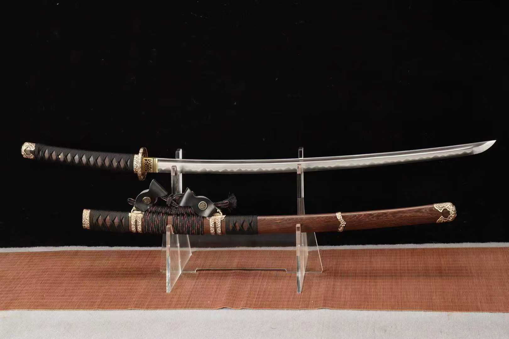 Kiếm Nhật Tachi Nhất Di Hạc – 26 Inch T10 Rèn Tay, Lưỡi Trắng Tôi Đất, Chuôi Đồng Mạ Vàng, Vỏ Gỗ Hoa Lê Cao Cấp