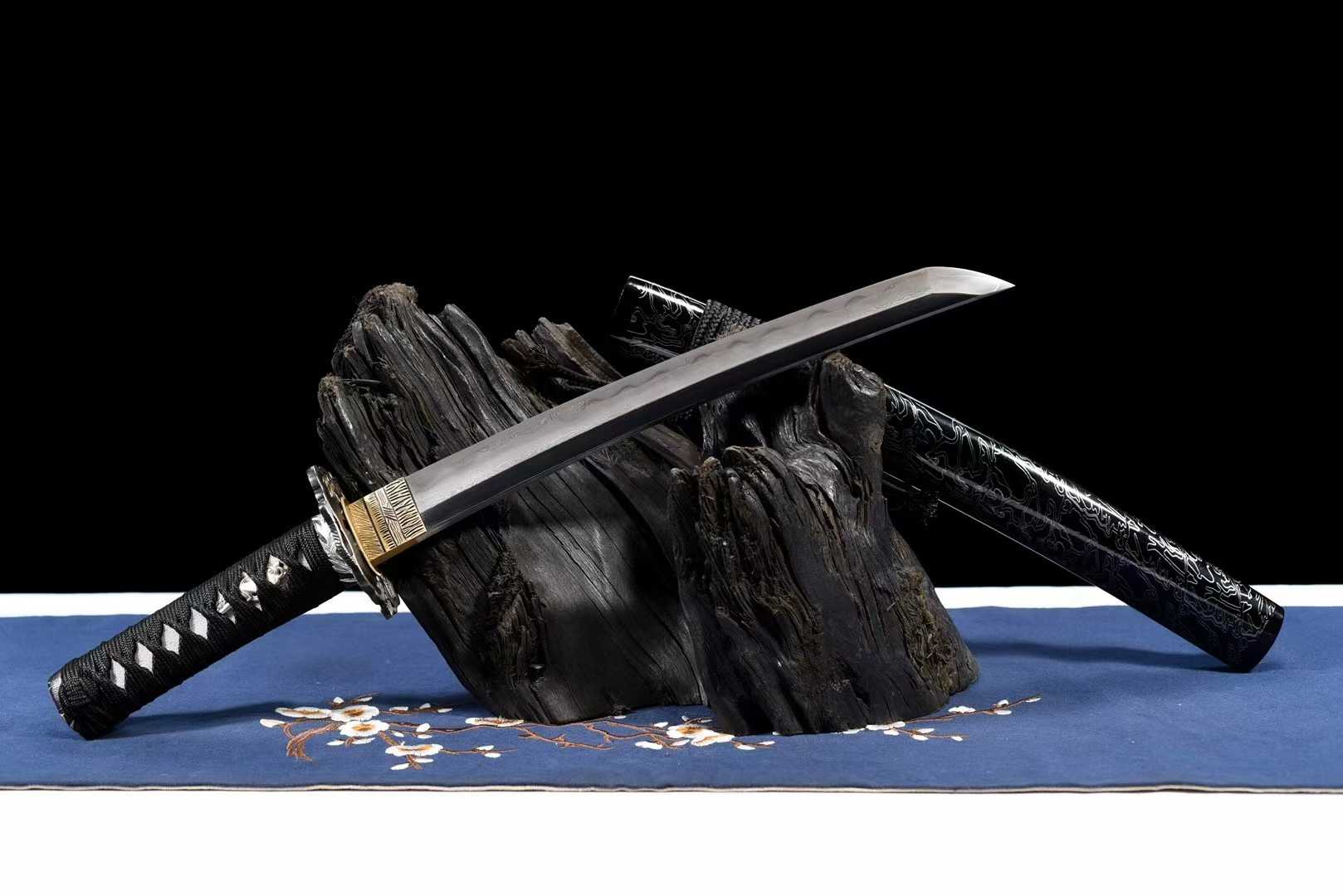 Kiếm Nhật Tanto Dạ Tu – Tuyệt tác 12-inch, Thép Bách Luyện T10, Hoa Văn Độc Đáo