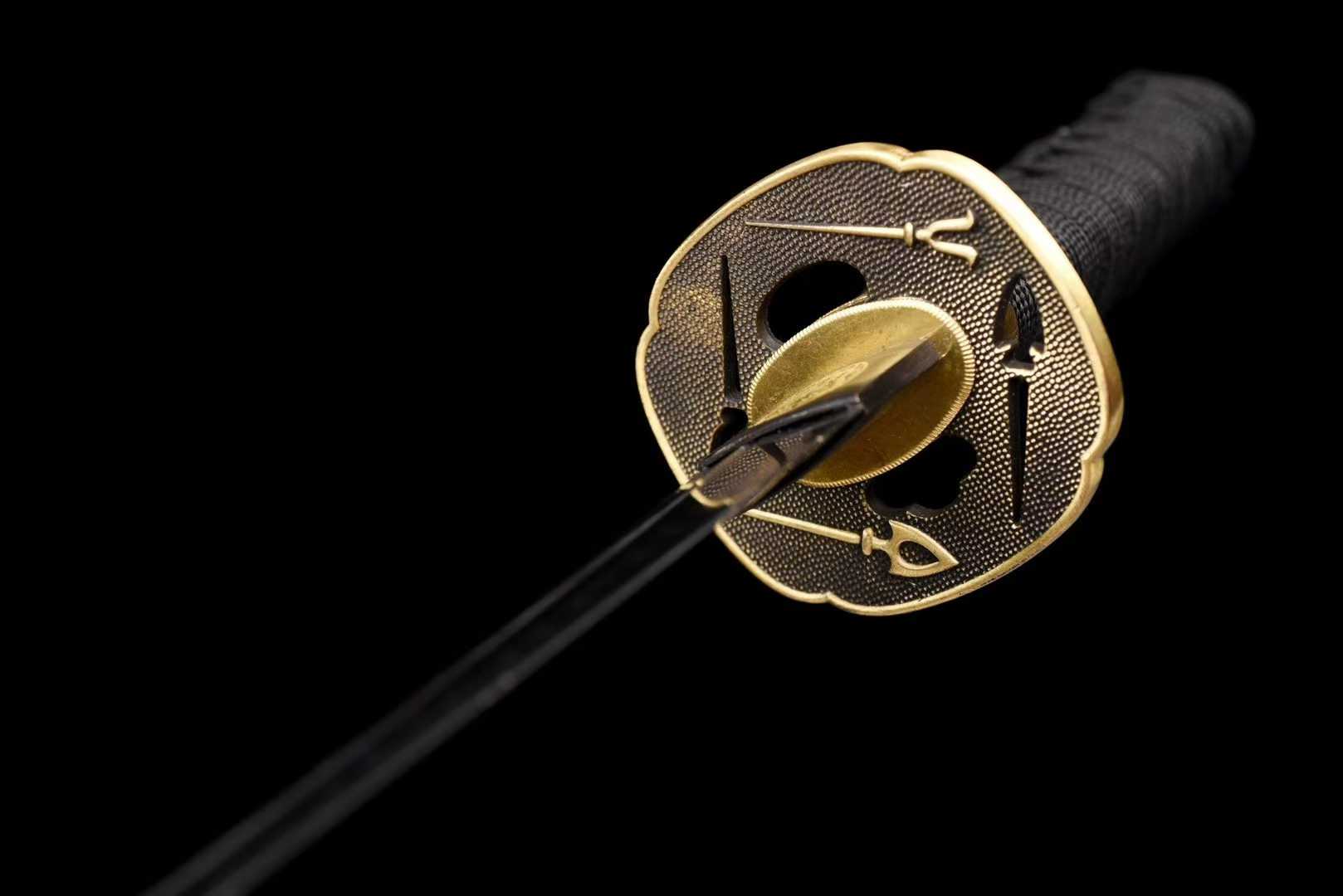Chất liệu lưỡi kiếm: Thép T10 đốt lửa, mang lại độ cứng cao và vẻ sắc bén vượt trội, với hàn khí lạnh khi chạm vào, cảm giác như có một làn gió lạnh lướt qua.