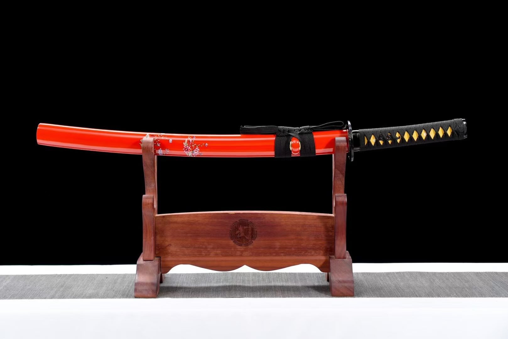 Mẫu wakizashi “Hồng Mai” nổi bật với thiết kế nghệ thuật vân lửa độc đáo, kết hợp giữa tính thẩm mỹ tinh xảo và hiệu năng mạnh mẽ, phù hợp cho sưu tầm, trưng bày hoặc làm quà tặng cao cấp.