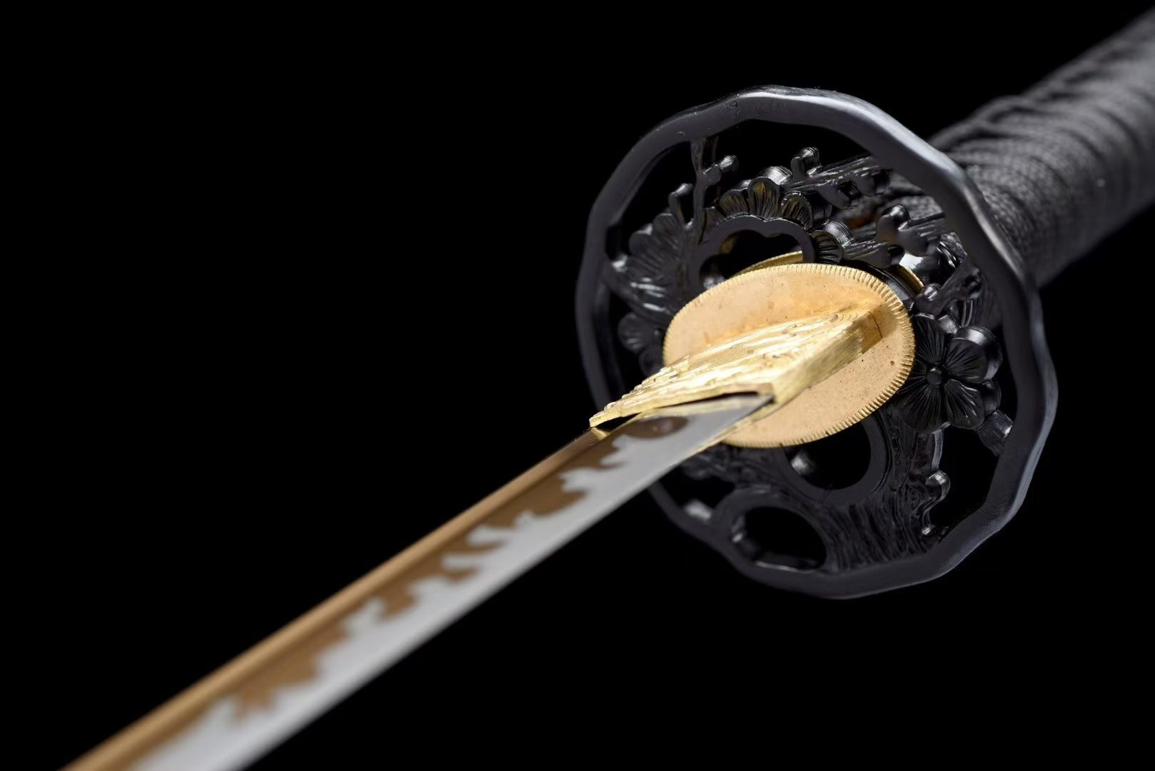 - Vỏ dao (Saya): Gỗ tự nhiên sơn mài, trang trí họa tiết hoa tinh tế