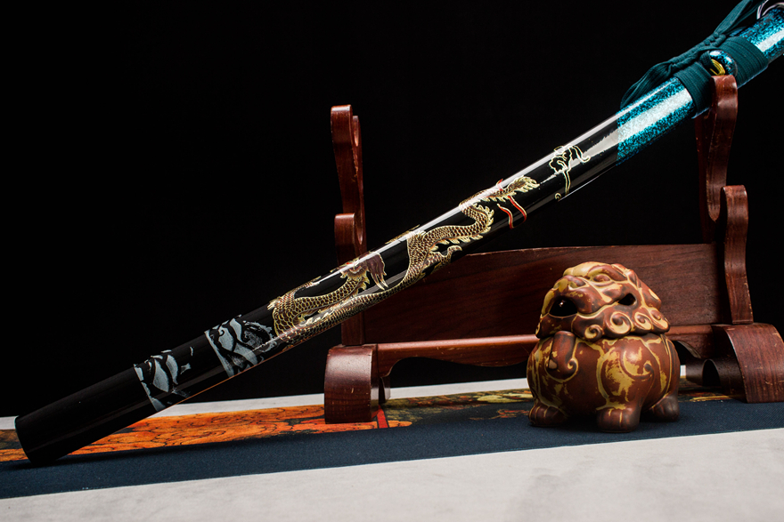 Lưỡi kiếm: Thép mangan cao cấp, được chế tác thủ công theo phương pháp truyền thống của trường phái Long Sơn. Thép có độ cứng và khả năng chịu lực cao, giúp kiếm luôn sắc bén và bền bỉ.