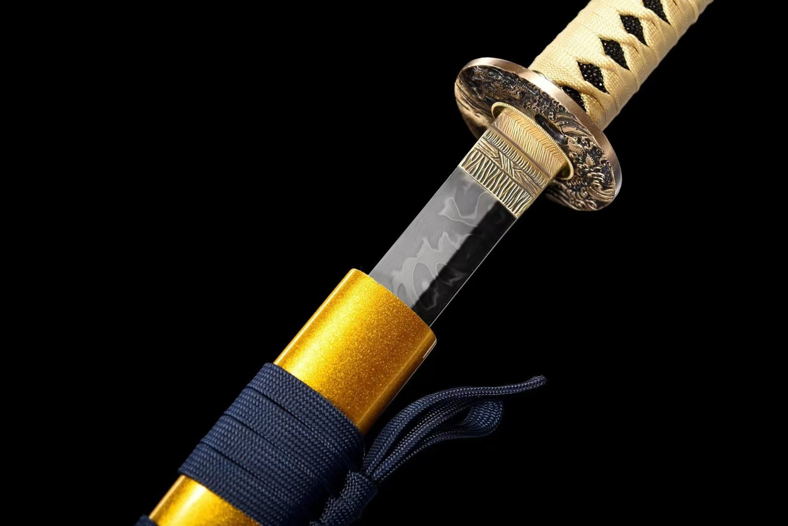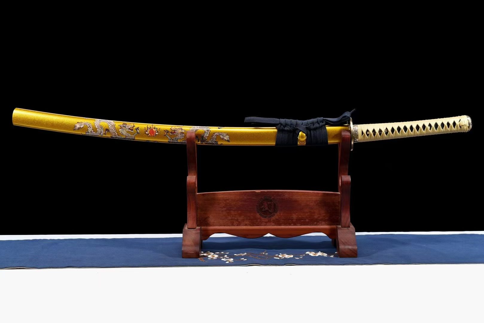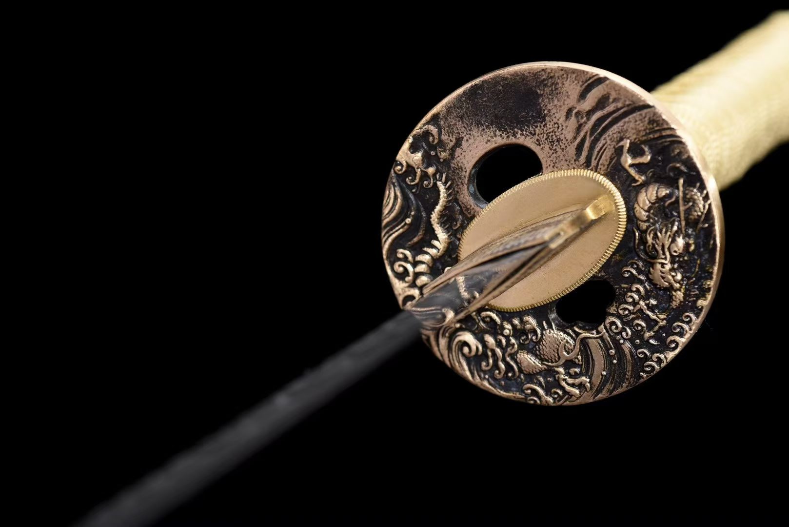 - Lưỡi kiếm: Thép T10 tôi lưỡi toàn phần, hamon độc bản