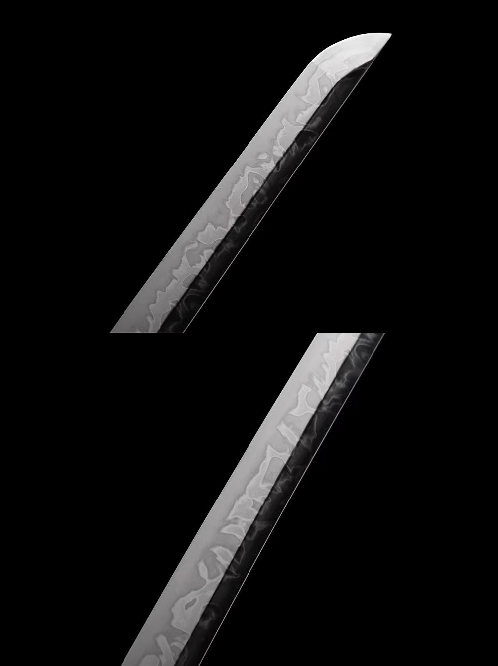 Lưỡi kiếm được chế tác từ thép T10 cao cấp, trải qua 18 công đoạn mài thủ công, kết hợp kỹ thuật rèn cổ truyền và phủ đất tôi, tạo nên vân hamon độc nhất trên từng thanh kiếm, không trùng lặp. Độ cứng đạt khoảng 60 HRC, giúp chặt kim loại không sứt mẻ, đồng thời vẫn giữ được sự cân bằng giữa độ cứng và độ dẻo.