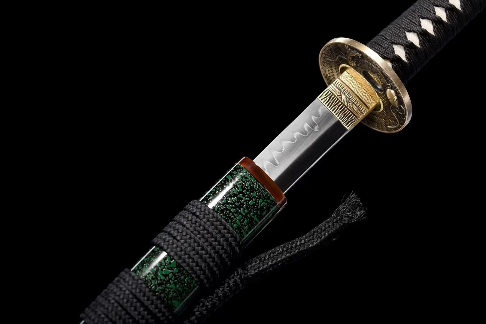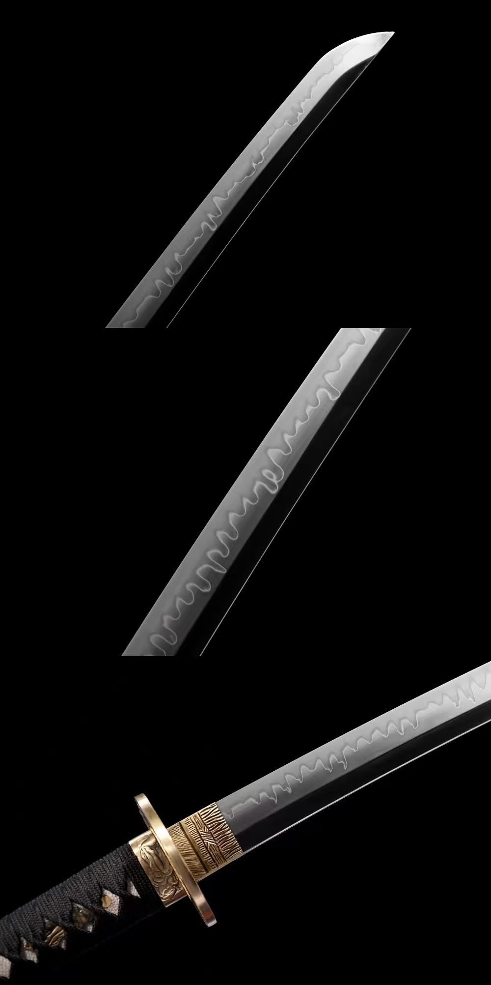 - Lưỡi kiếm: Thép T10 mài ba màu Nhật Bản, hoàn thiện gương cao cấp