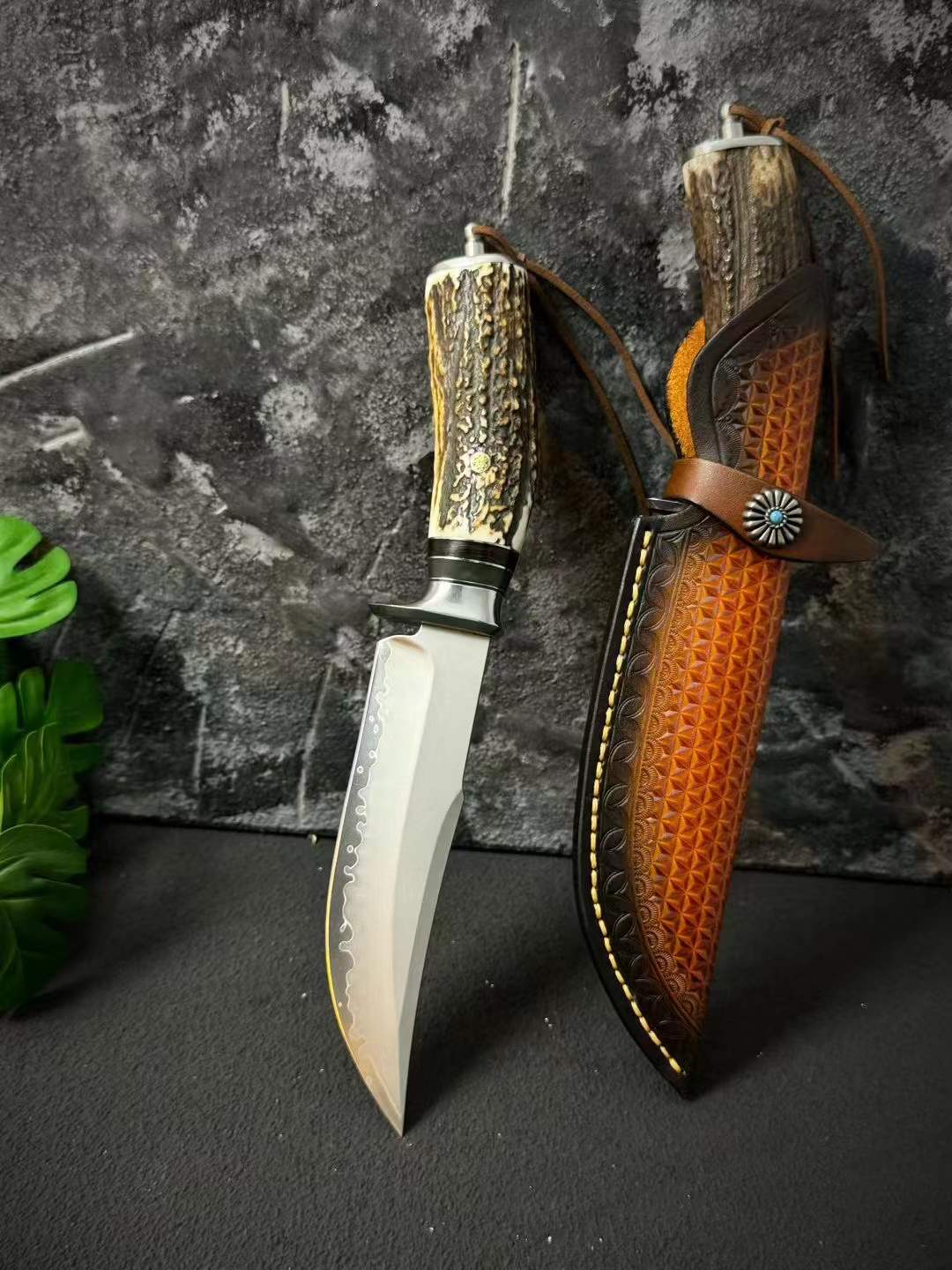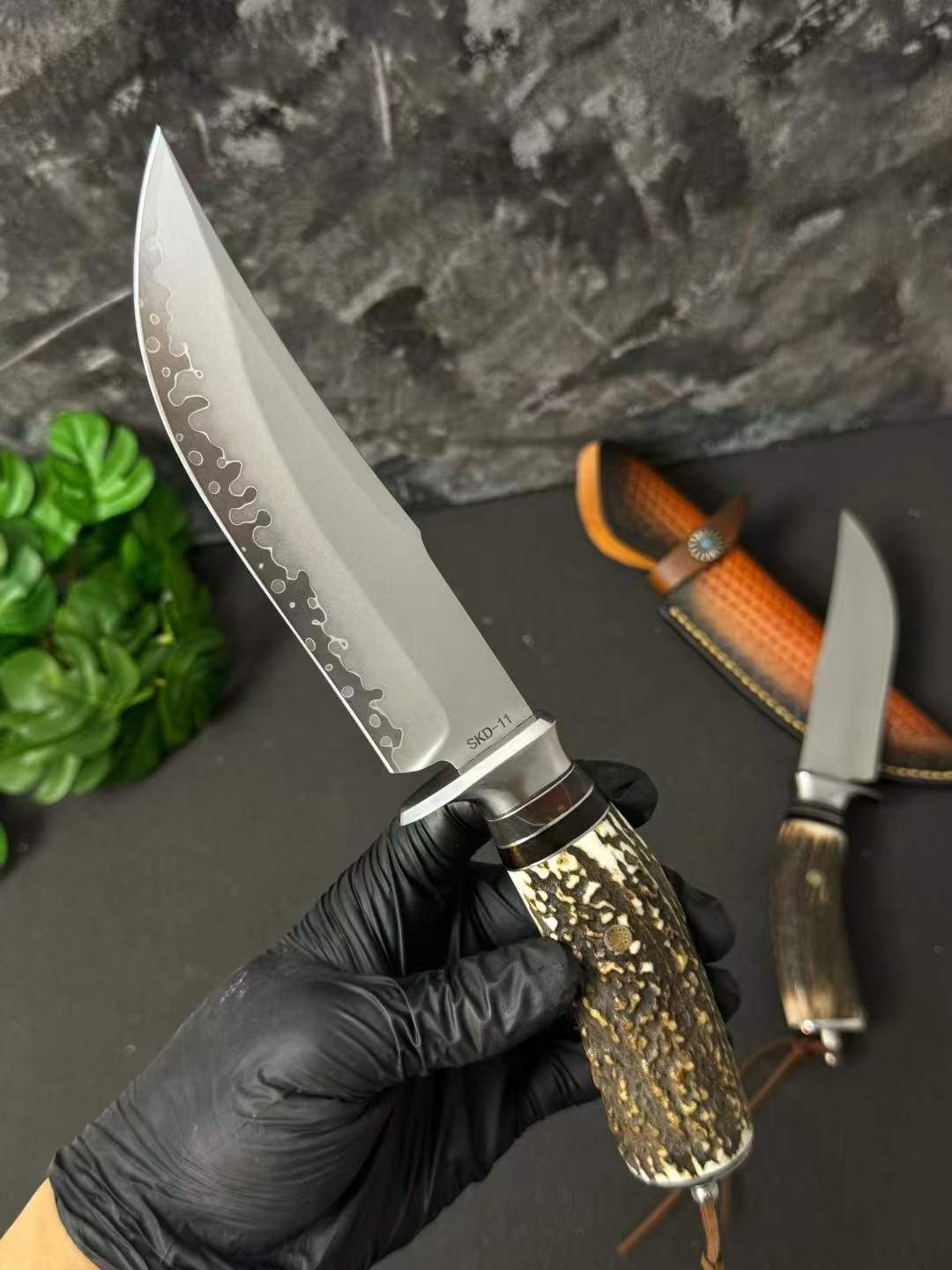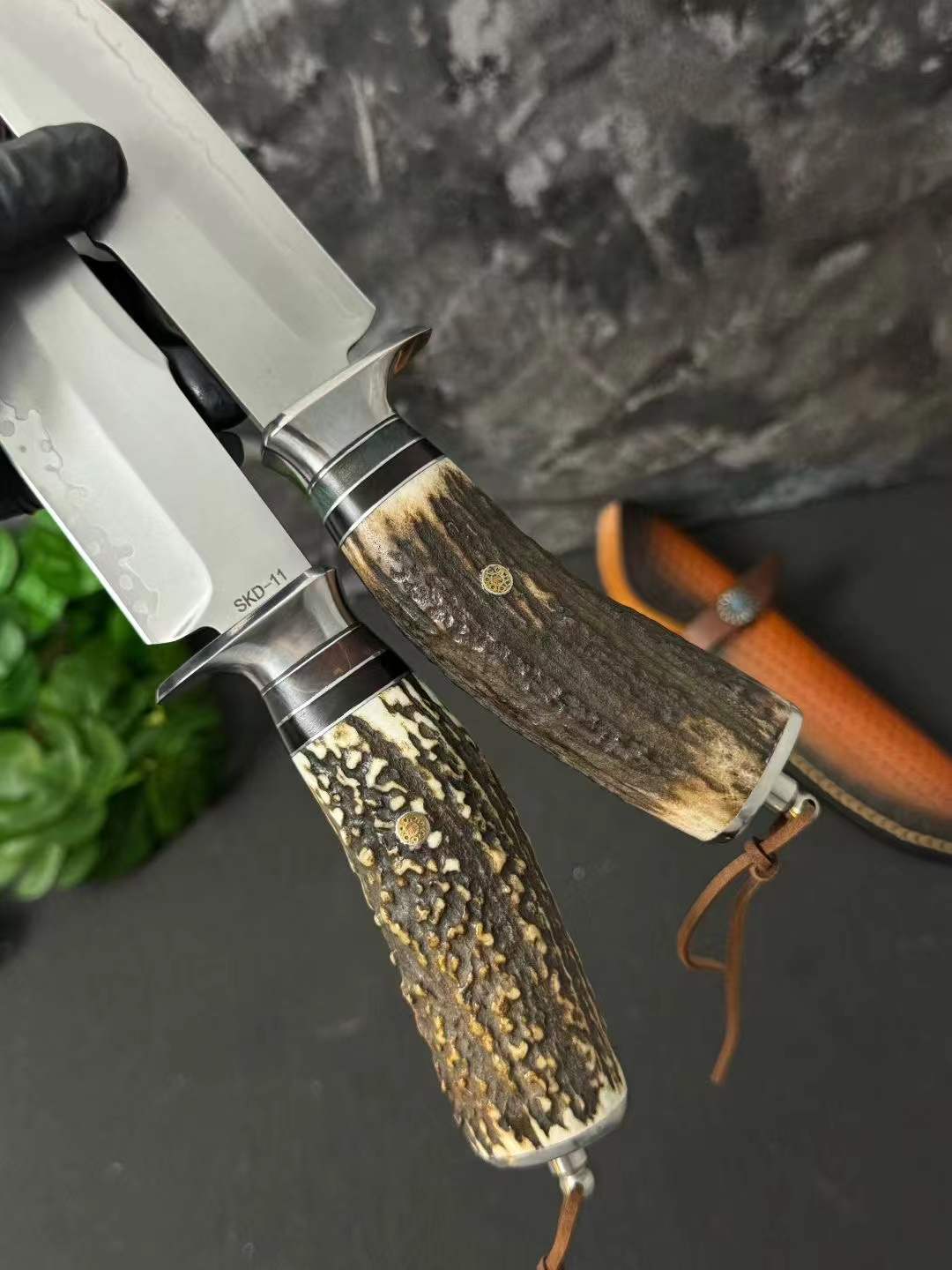Chất liệu: Đầu thép 440C + gạc nai tự nhiên nguyên khối