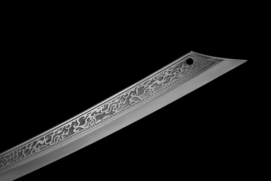 Lưỡi đao: Thép mangan cao cấp, hoa văn khắc nung tinh tế