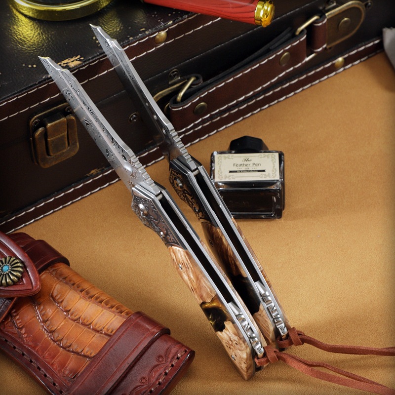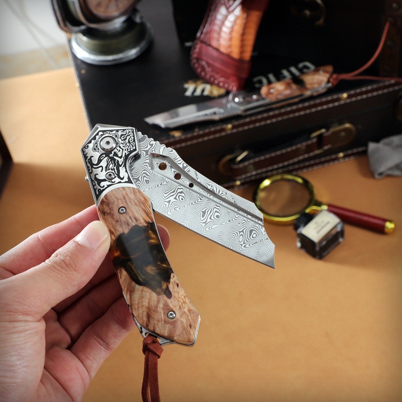 Dao Gấp Damascus Cao Cấp Cự Long – Thép 95 Lớp, Độ Cứng 61HRC, Thiết Kế Mạnh Mẽ