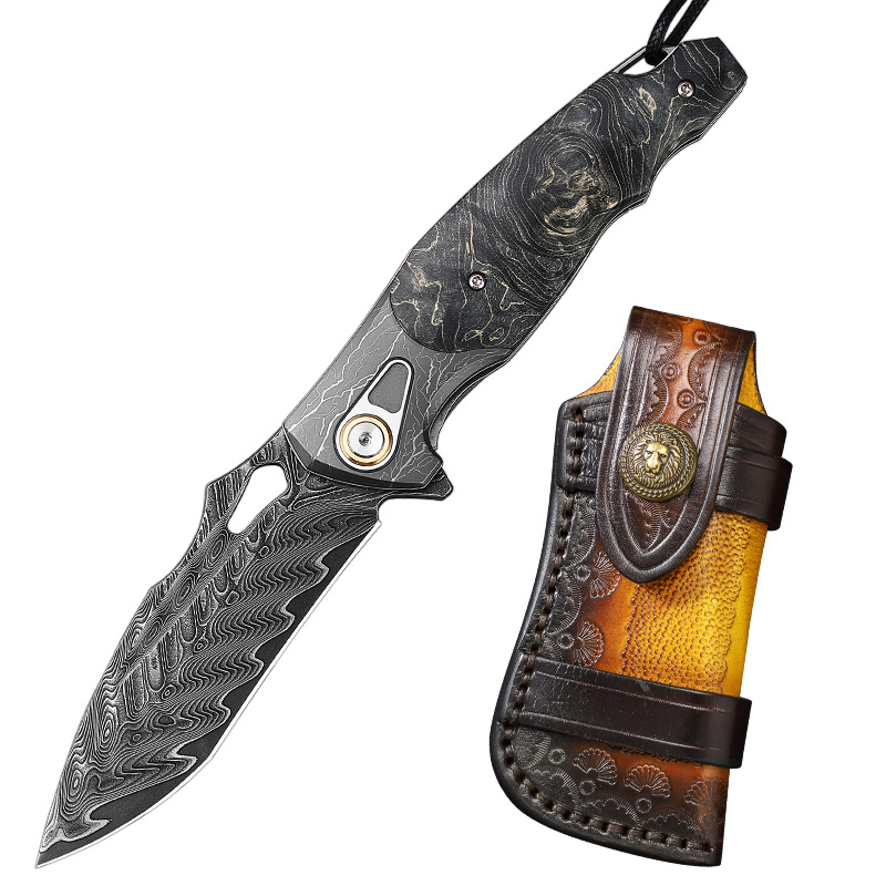 Dao Gấp Damascus Cao Cấp Lôi Bạo Phong – Lưỡi Dày 3.1mm Siêu Bền, Thiết Kế Mạnh Mẽ