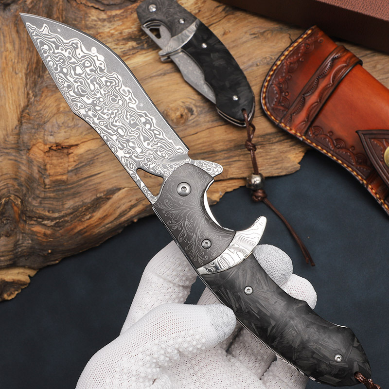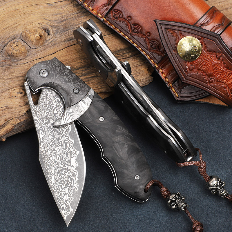 Dao Gấp Damascus Cao Cấp Yêu Cơ – Thép Nhật 67 Lớp, Lưỡi Rộng 3.7cm Siêu Bền