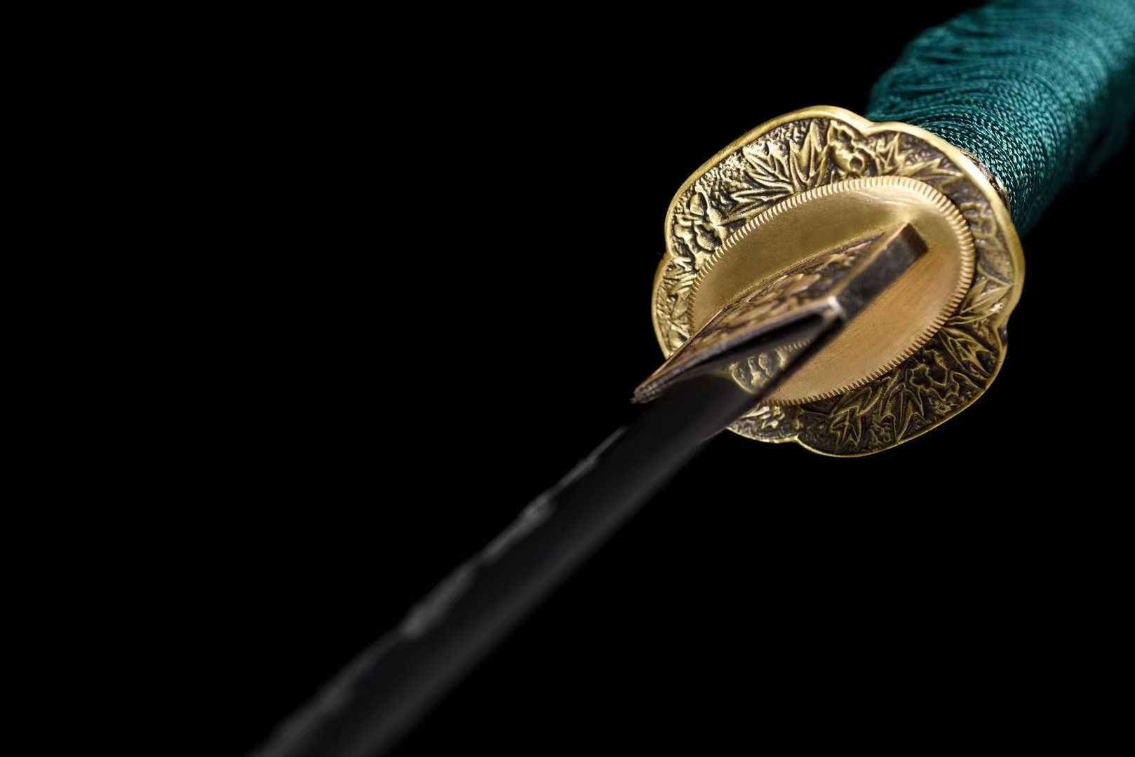 Thép T10 cao cấp, rèn thủ công bằng kỹ thuật 覆土烧刃 (phủ đất nung mép) – tăng độ cứng phần lưỡi, giúp vừa sắc bén vừa đàn hồi