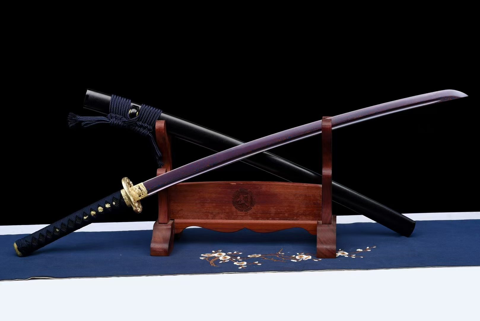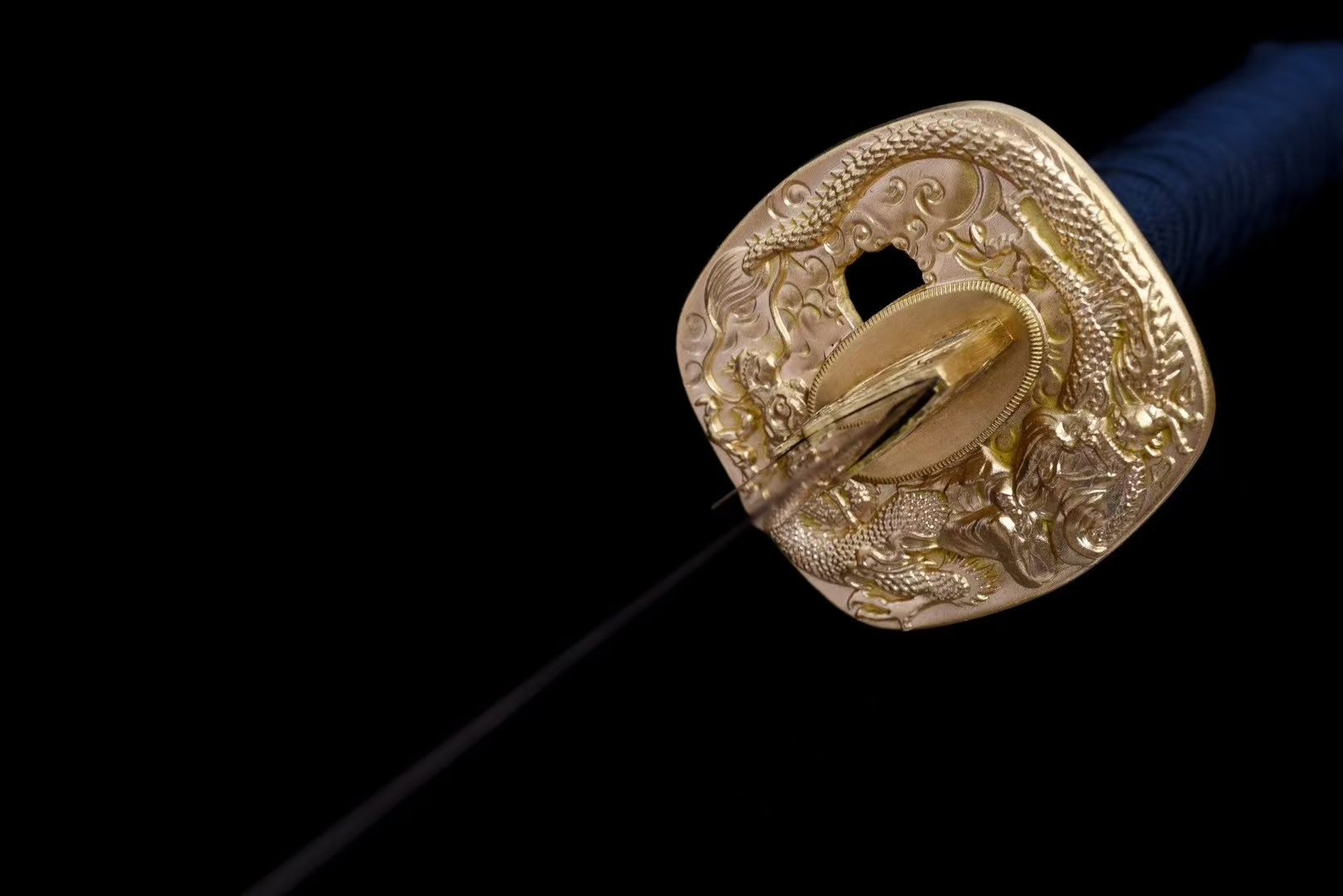 Katana Samurai Long Diêm Võ Sĩ – Thép Hoa Văn Nung Xanh, Đồng Nguyên Khối, Siêu Cứng & Bền Bỉ
