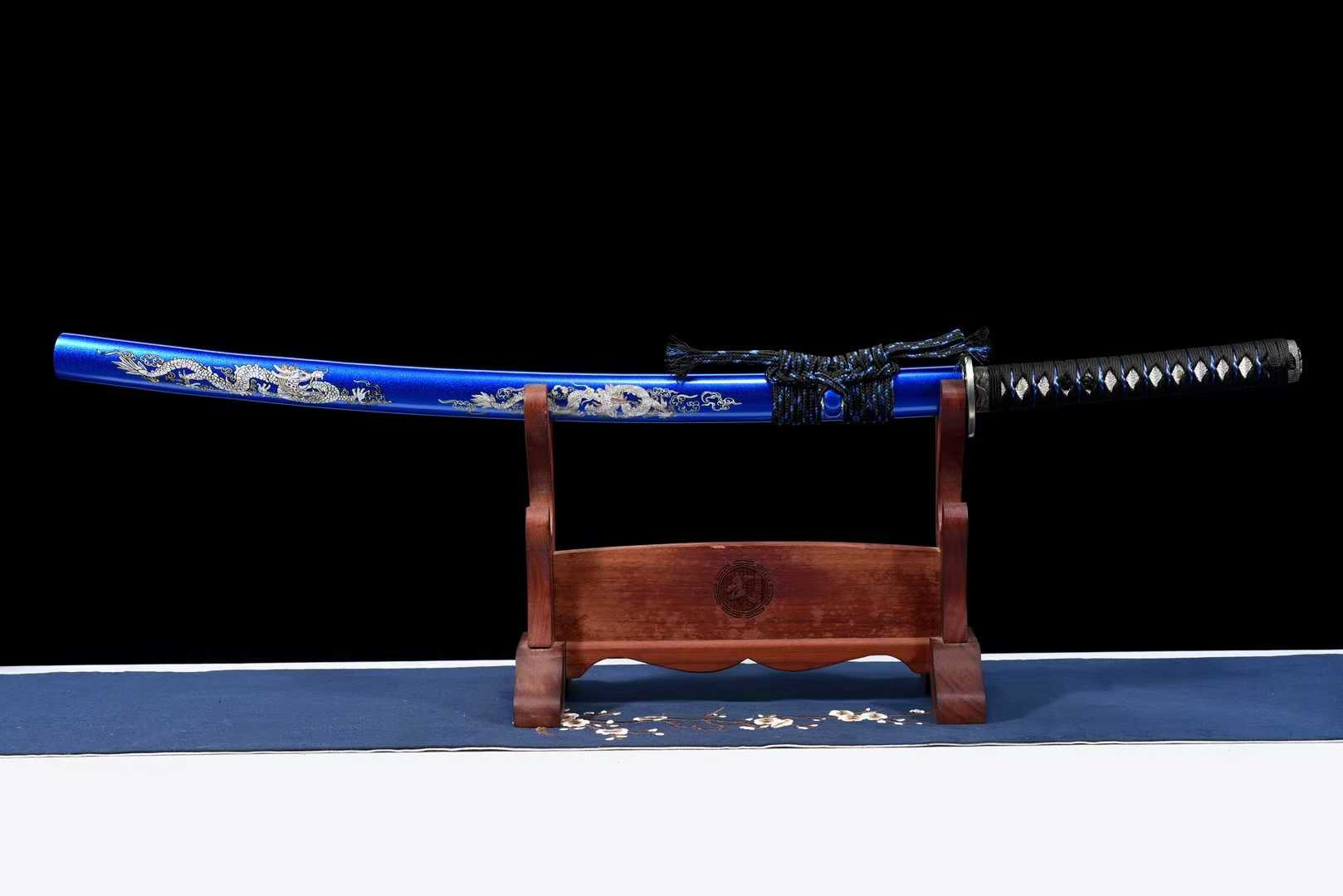 Vỏ kiếm: Gỗ sơn mài cao cấp, trang trí song long, đi kèm sageo Nhật tinh xảo