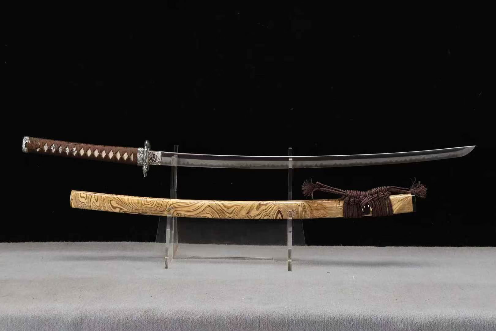 Kiếm Katana Nhất Niệm Võ Sĩ 26 Inch – Thép T10 Tôi Lưỡi, Nền Mài Nhật, Sóng Nước Trắng
