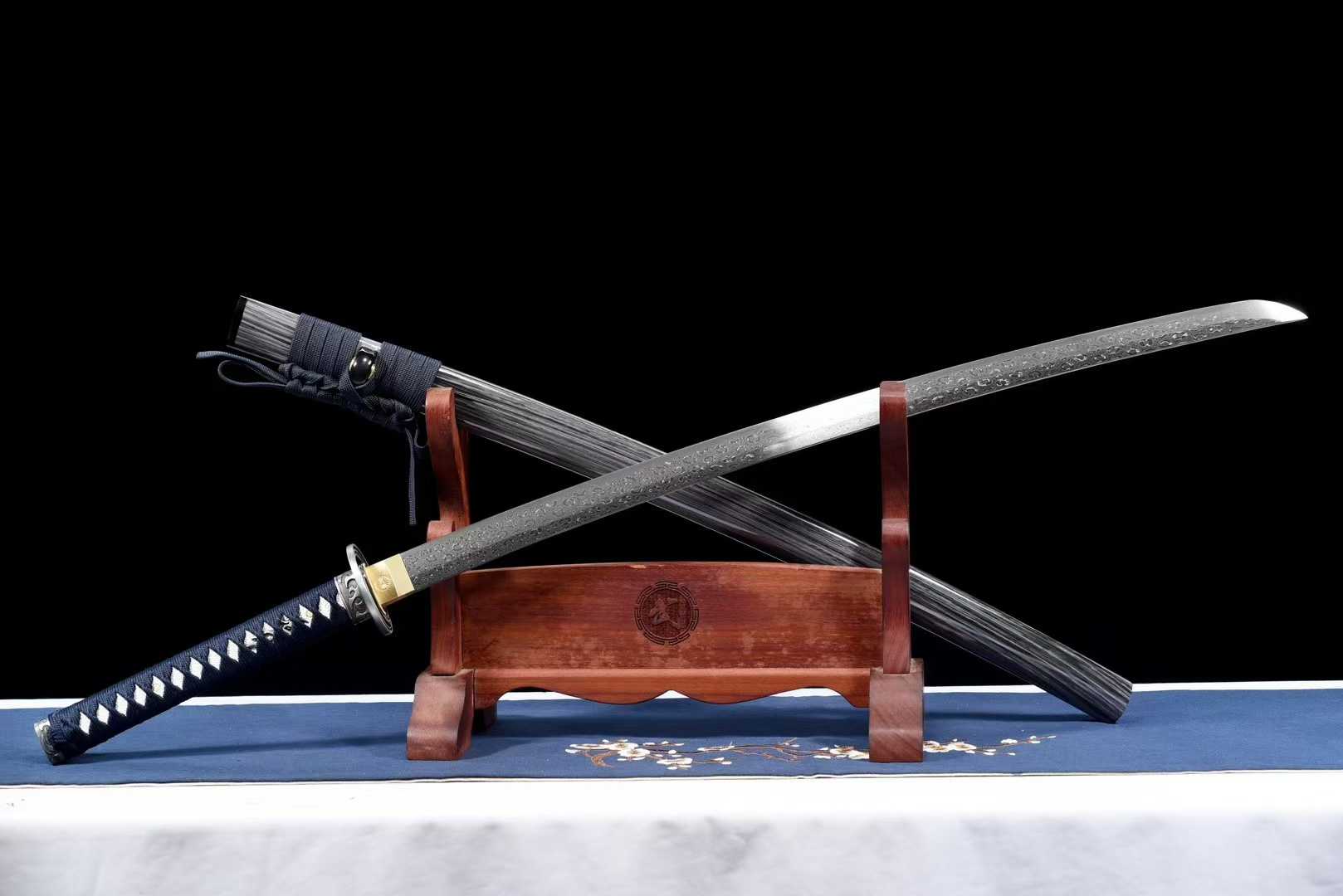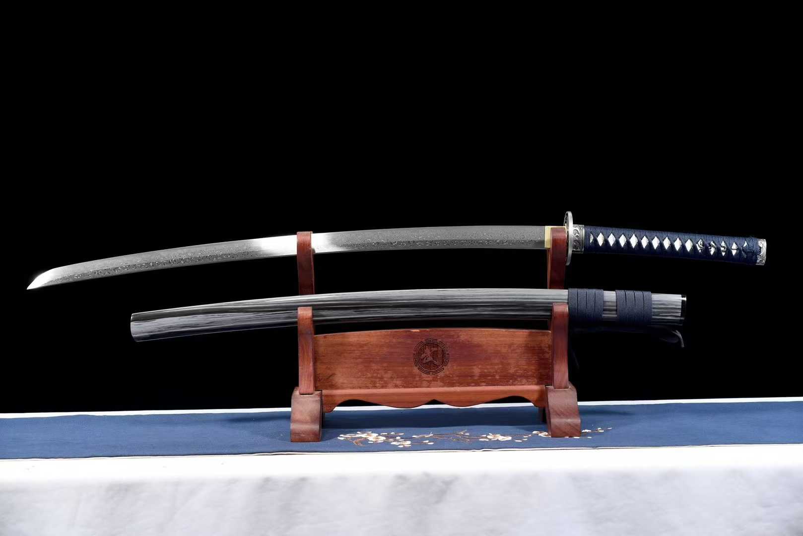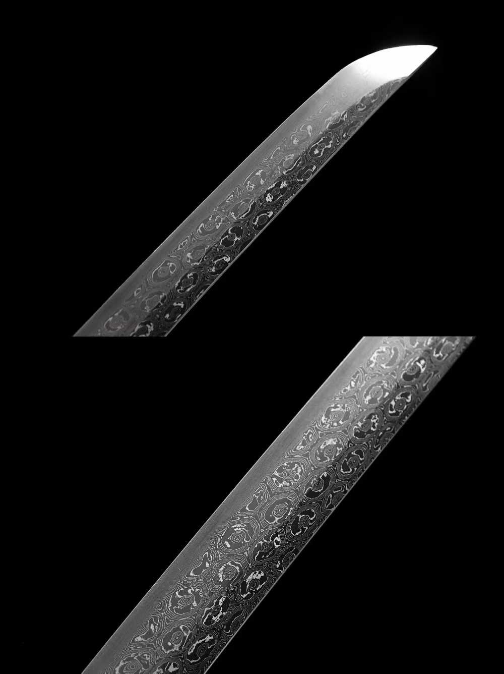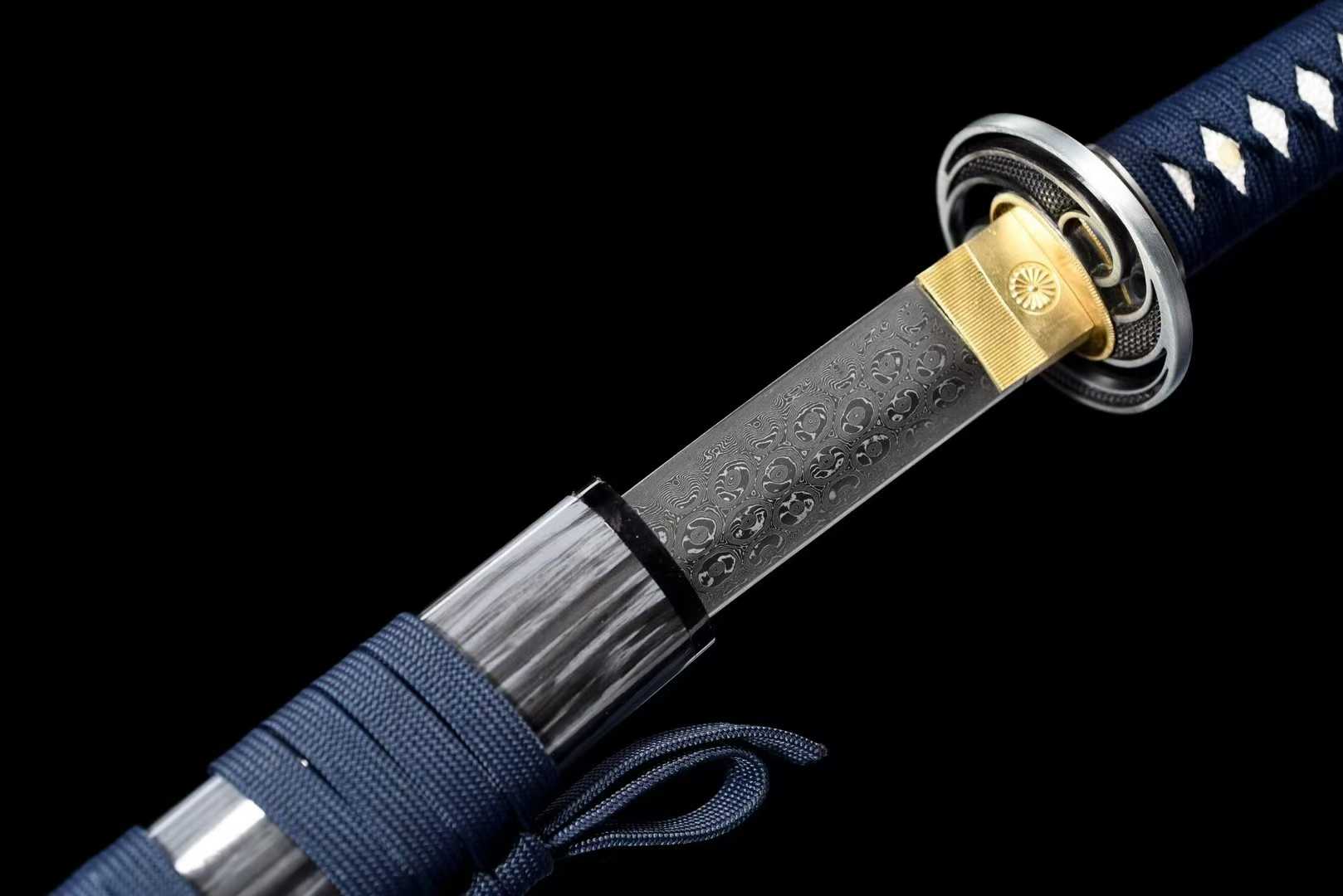 Kiếm Katana Samurai Hoa Văn Huyễn Dạ – Vân Hoa Hồng Damascus Thủ Công