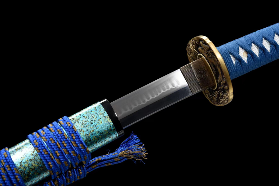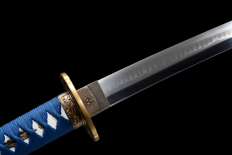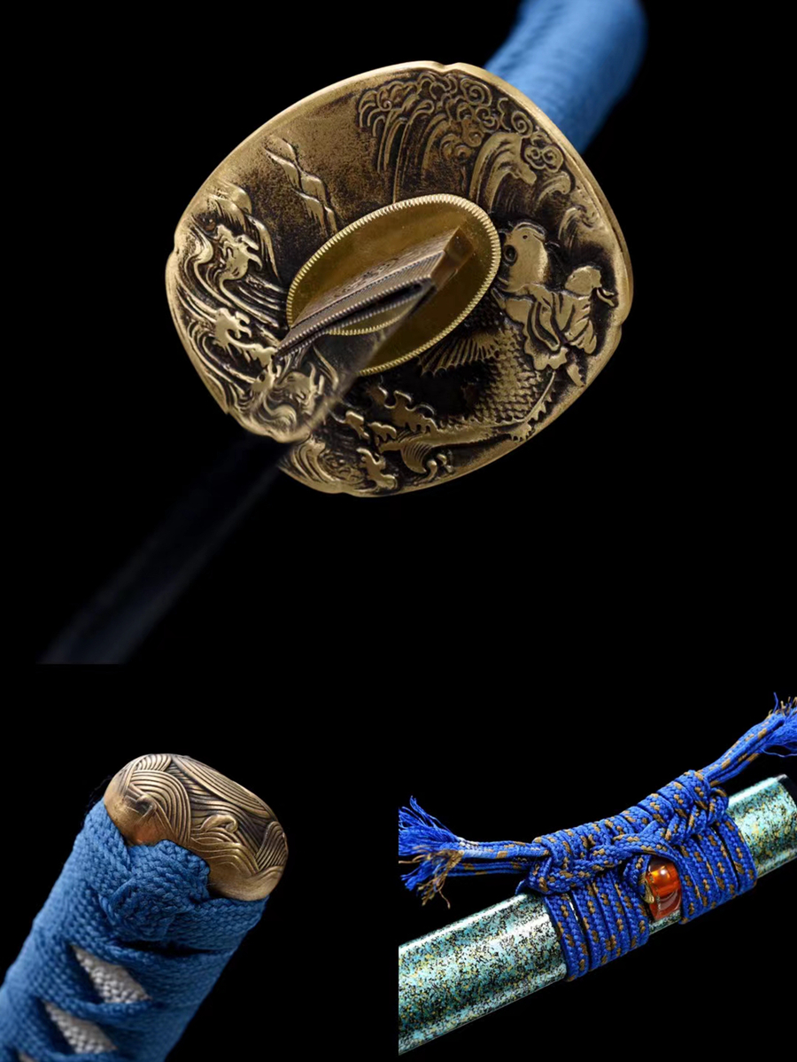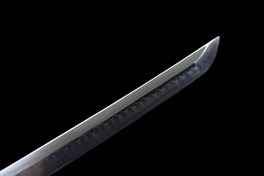 Sử dụng thép T10 chất lượng cao, tôi phủ đất theo phương pháp 覆土烧刃 – tạo ra đường sống lưỡi Hamon tự nhiên sắc nét, tăng độ cứng và thẩm mỹ.