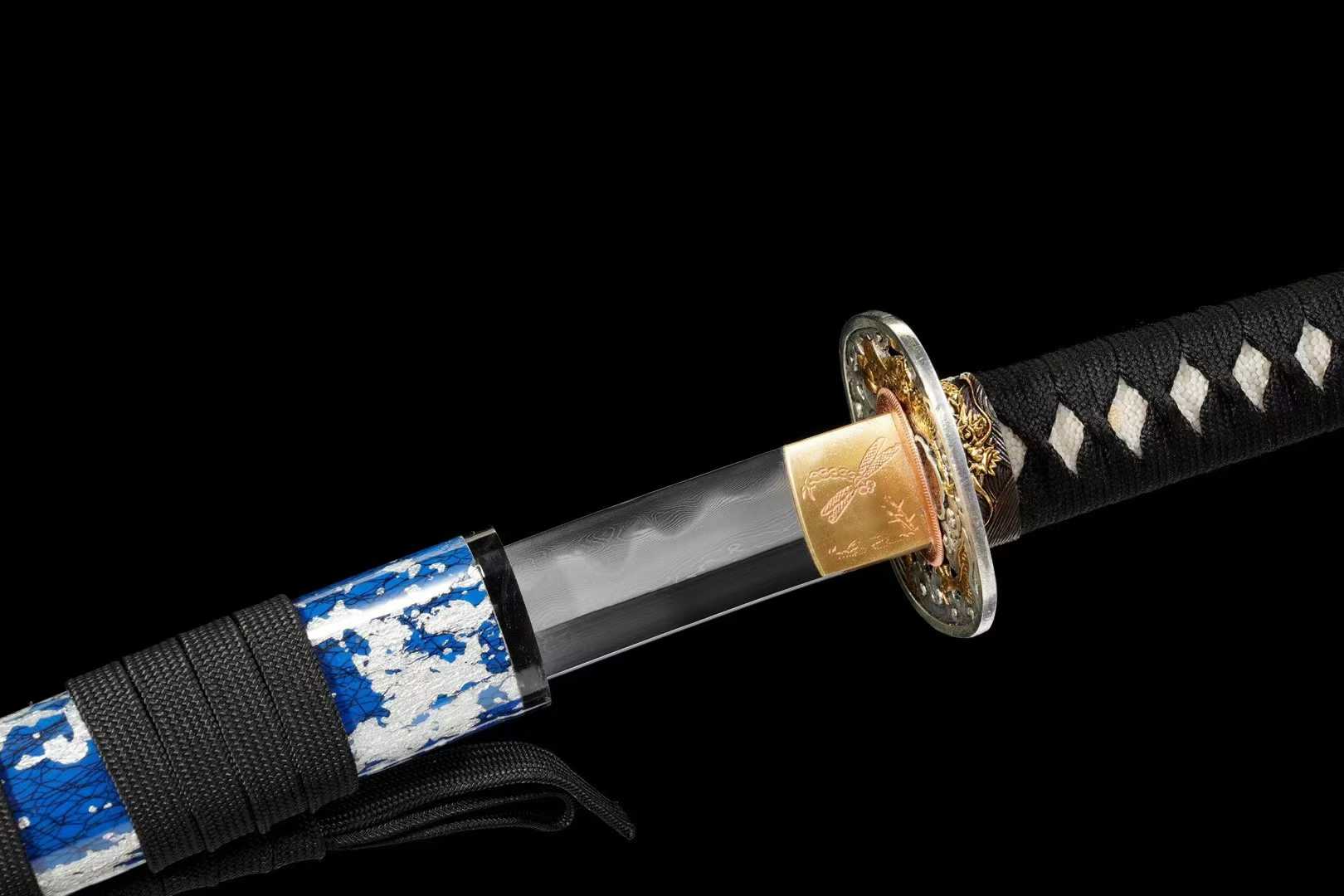 Chất liệu lưỡi: Thép ngàn lớp tự luyện, phủ đất nung (Hamon)