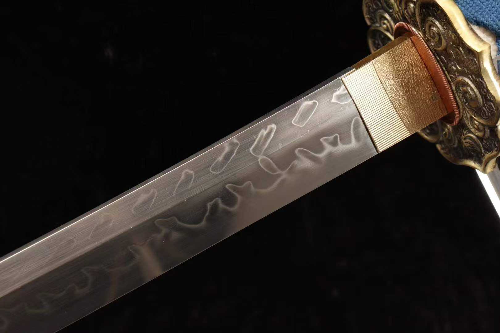 Đặc điểm: Kiếm có lưỡi hình dạng V lớn, lưỡi thẳng và sắc bén, ít ma sát khi cắt. Hình dáng của kiếm dần mở rộng từ phần cán về phía mũi kiếm, và mỏng dần về phía đầu. Lưỡi được chế tác từ công nghệ rèn thép Damascus, nung đến 1200 độ C và tôi bằng nước lạnh, mang lại độ bền và độ linh hoạt tuyệt vời, kết hợp hoàn hảo giữa độ cứng và độ dẻo. Tỉ lệ vàng của điểm trọng tâm được đặt cách tay cầm 12 cm, giúp cầm nắm chắc chắn và cảm giác rất tinh tế. Đây là một mẫu kiếm sưu tầm tuyệt vời.