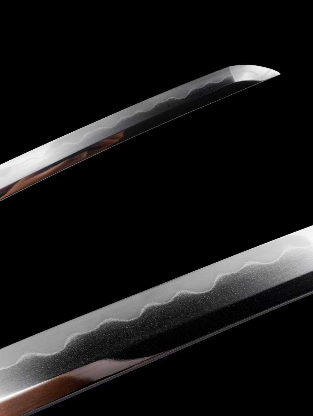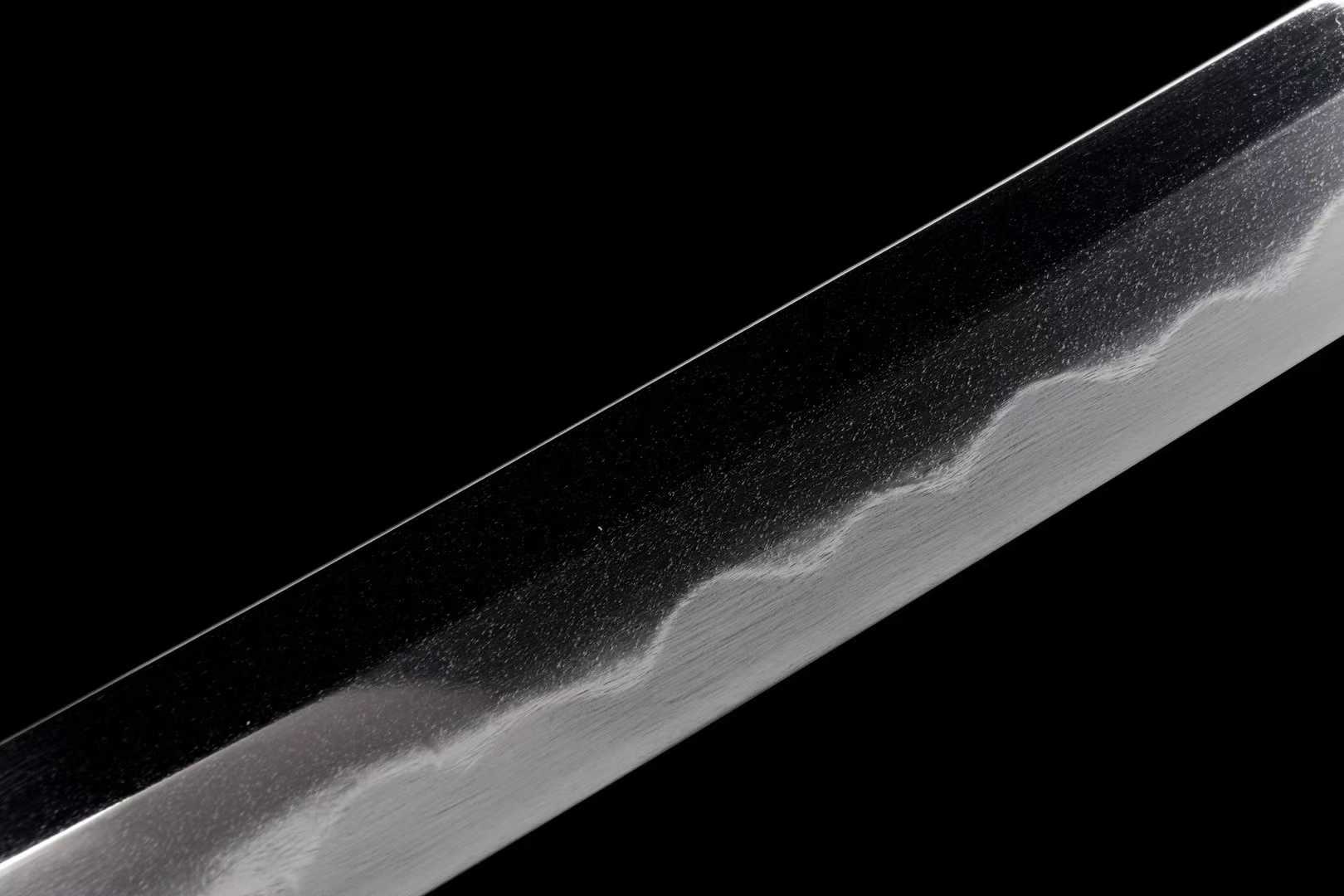 Thanh kiếm được phủ đất tôi cháy lưỡi (覆土烧刃) và mài tay hoàn toàn theo phong cách Nhật “Lê Tử Địa” (梨子地日式研), tạo nên bề mặt sáng mờ sang trọng, lưỡi sắc bén tinh tế, độ phản sáng mềm mại và tự nhiên.