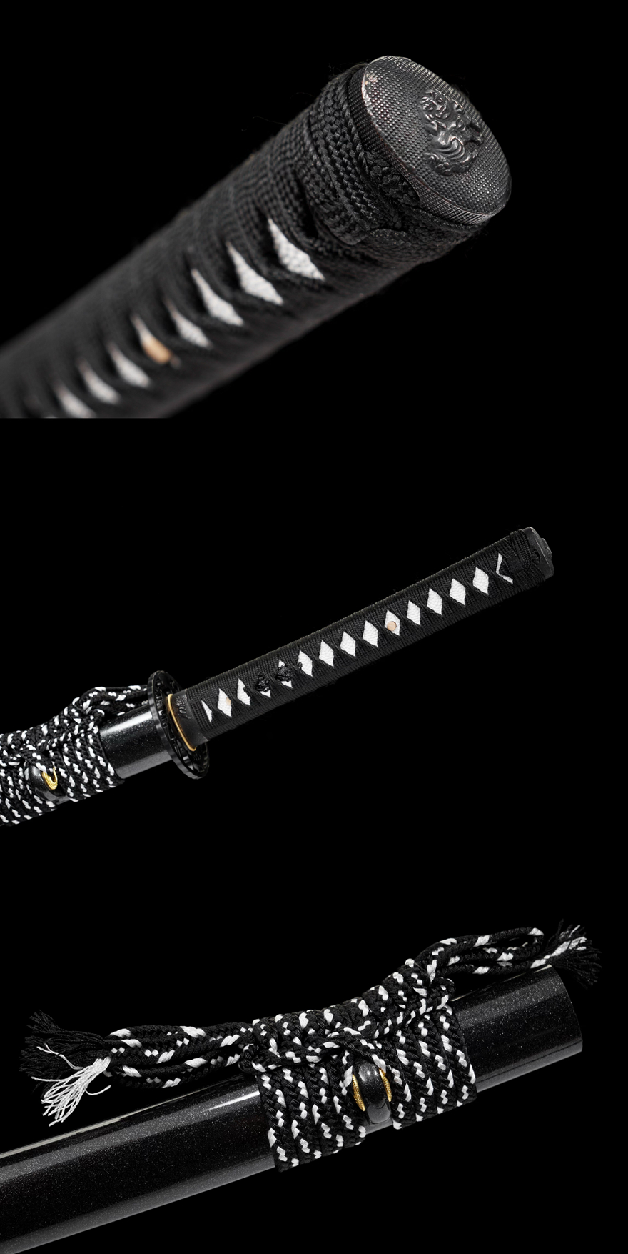Trang bị: Vỏ kiếm làm từ gỗ tự nhiên sơn mài, kèm dây quấn tay cầm to bản (粗下绪) vừa chắc chắn vừa đẹp mắt.