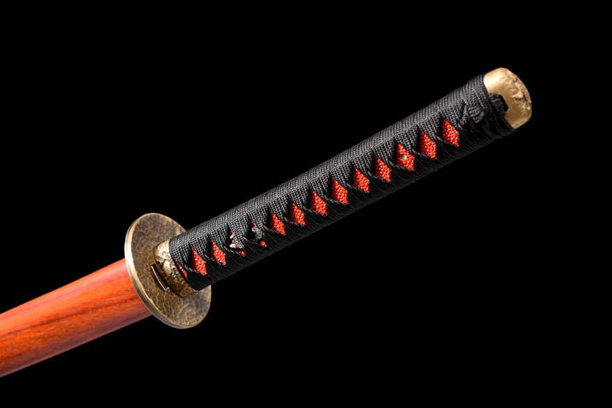 Vỏ kiếm: Làm từ gỗ gụ đỏ cao cấp, được gia công tỉ mỉ, vừa đẹp mắt vừa giúp bảo vệ lưỡi kiếm hiệu quả.