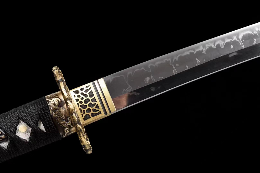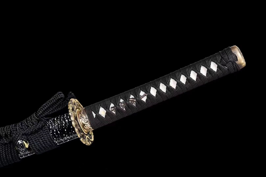 Kiếm Nhật katana Long Tước – T10 Tôi Đất, Mài Gương | Đồng Khắc Thủ Công, Vỏ Gỗ Quấn Mây Sơn Mài Cao Cấp