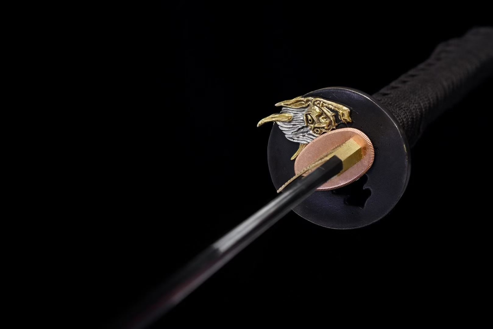 • Fuchi, kashira, tsuba… bằng đồng nguyên khối chạm khắc tinh xảo, mạ vàng bạc