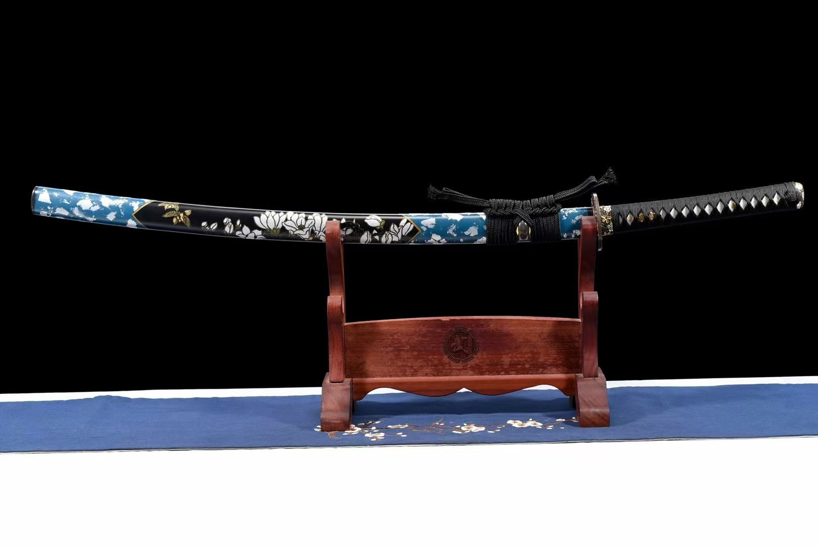 Katana “Bạch Ngọc Lan” là tuyệt phẩm kiếm samurai cao cấp, được chế tác hoàn toàn thủ công từ thép hoa văn bách luyện gấp lớp, kết hợp kỹ thuật tôi lưỡi đắp đất truyền thống, mang lại độ sắc bén và độ bền vượt trội.