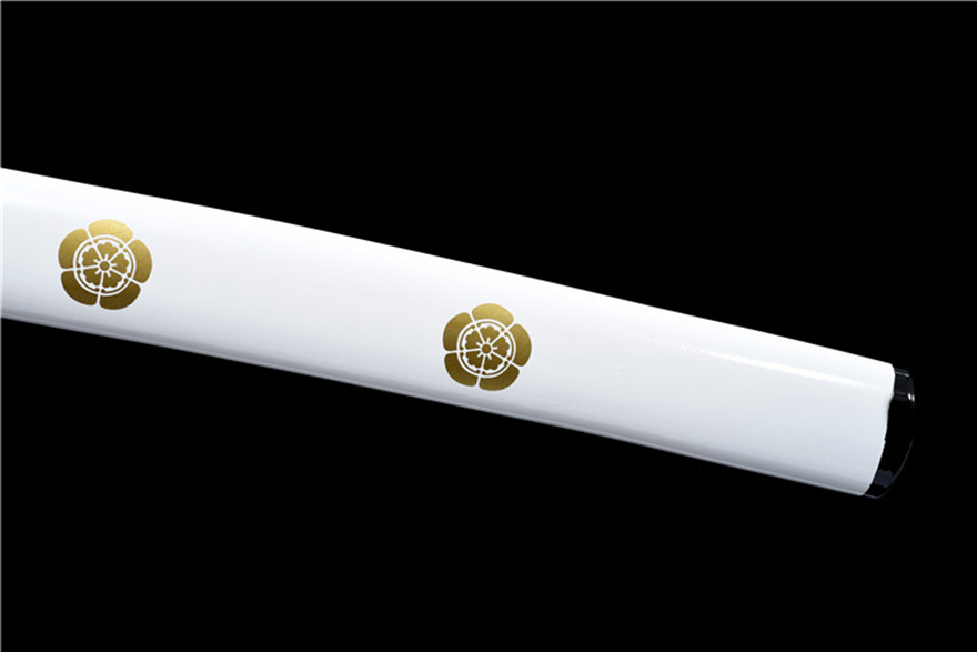 Vỏ kiếm: Làm từ gỗ tự nhiên, sơn mài cao cấp, trang trí huy hiệu gia đình truyền đời sắc nét, kèm dây quấn tay cầm thô dày đẹp mắt.
