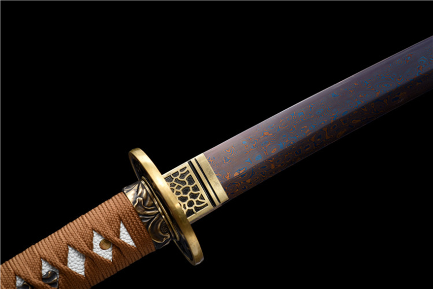 Kiếm Nhật Katana Tân Lam –Thép Hoa Văn Tự Luyện, Mạ Xanh Cao Cấp