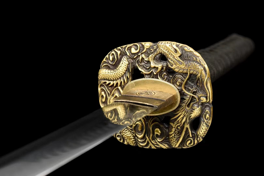 Chuôi kiếm làm từ đồng nguyên chất độc quyền với thiết kế tinh xảo.