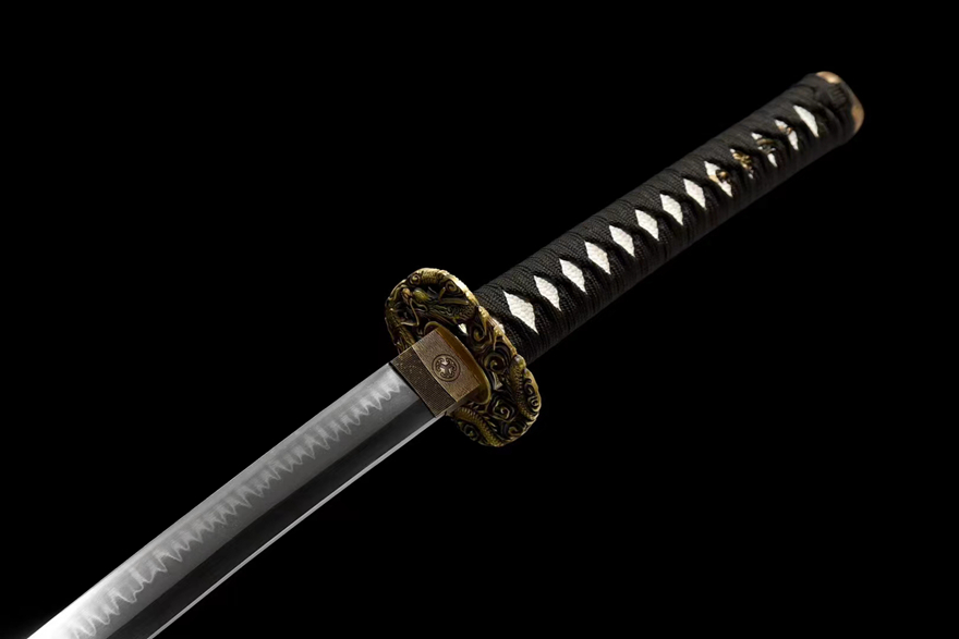 Kiếm Nhật “Nhị Long Hí Châu” được chế tác thủ công từ thép đặc biệt phủ đất đốt sống với hoa văn chữ đinh (丁字纹), qua 18 bước mài thủ công với kỹ thuật mài gương sắc bén. Lưỡi kiếm có độ cứng lên đến 60 HRC, có thể chém sắt mà không làm mẻ lưỡi, kết hợp hài hòa giữa độ cứng và độ dẻo.