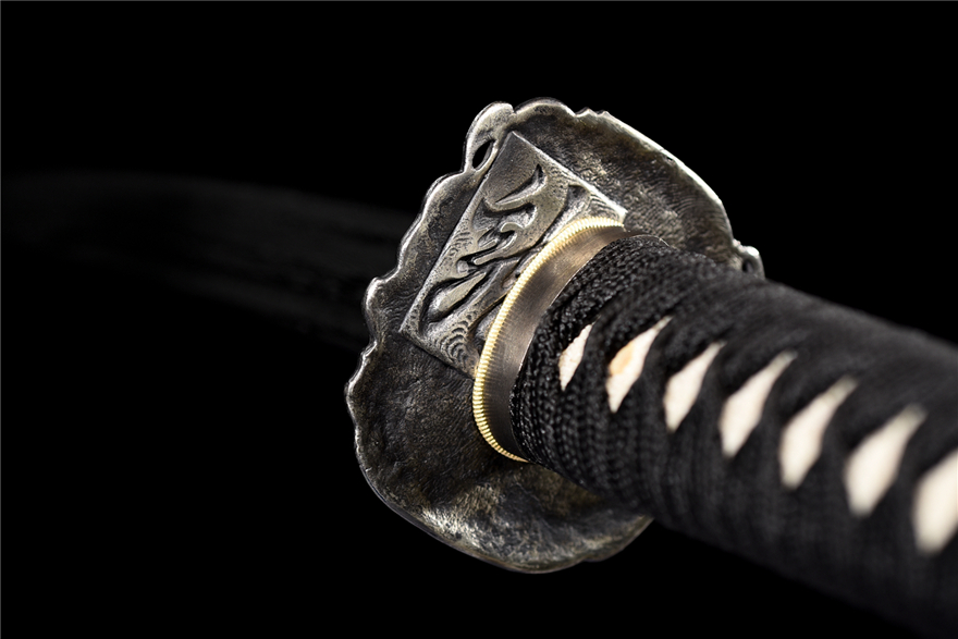 Phụ kiện: Chuôi, mũ, tsuba đều làm bằng bạch đồng khắc họa tiết tinh xảo, xử lý tạo hiệu ứng cổ điển (giả cổ).