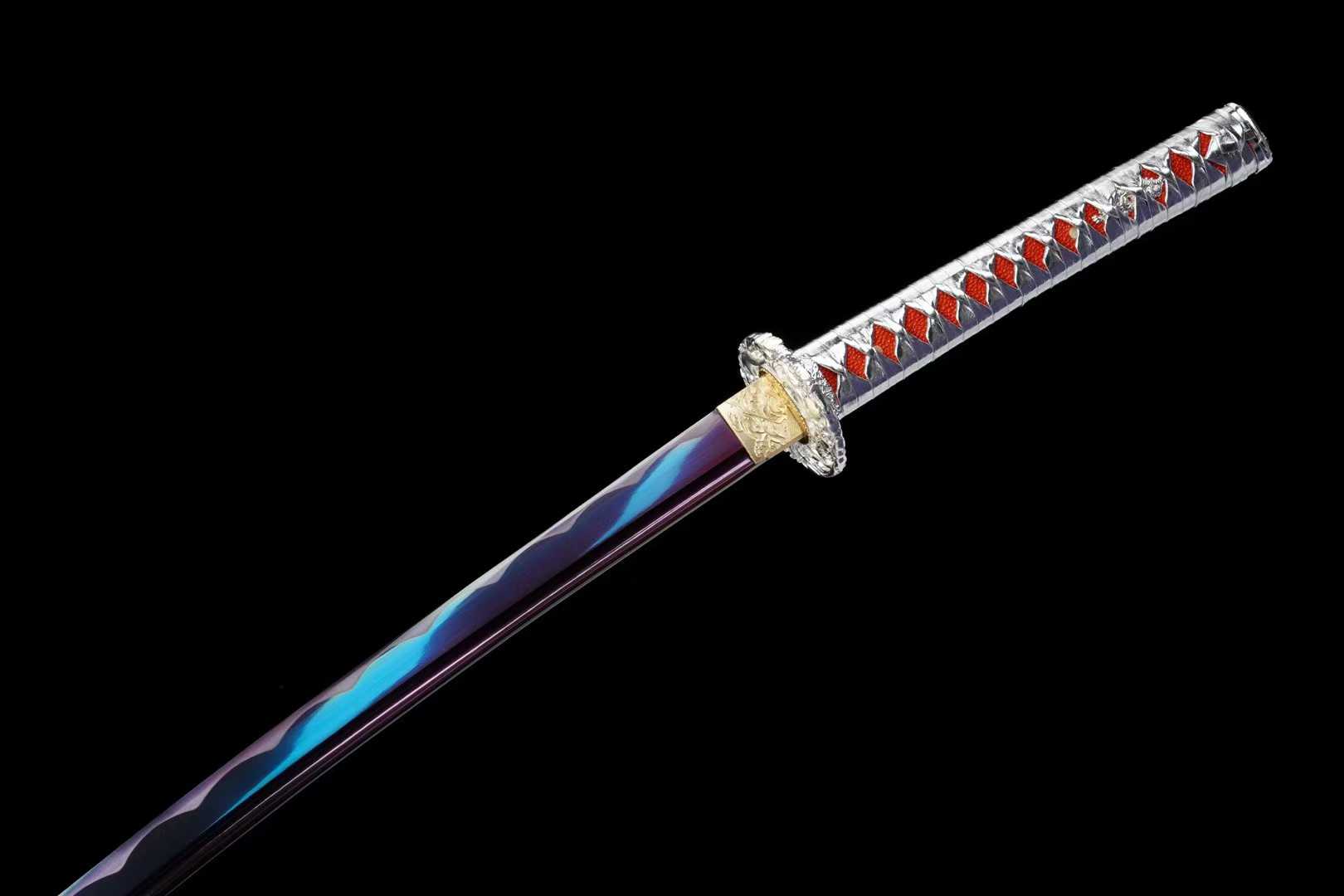 Kiếm Nhật Katana Thiên Tịch được chế tác từ thép trung carbon, xử lý theo công nghệ nung tím cổ điển, mang màu sắc sang trọng, bền bỉ, tăng khả năng chống oxy hóa và giữ độ bền lưỡi lâu dài. Kiếm có thiết kế cân đối, phù hợp cho sưu tầm, trưng bày, luyện tập võ thuật hoặc làm quà tặng cao cấp.