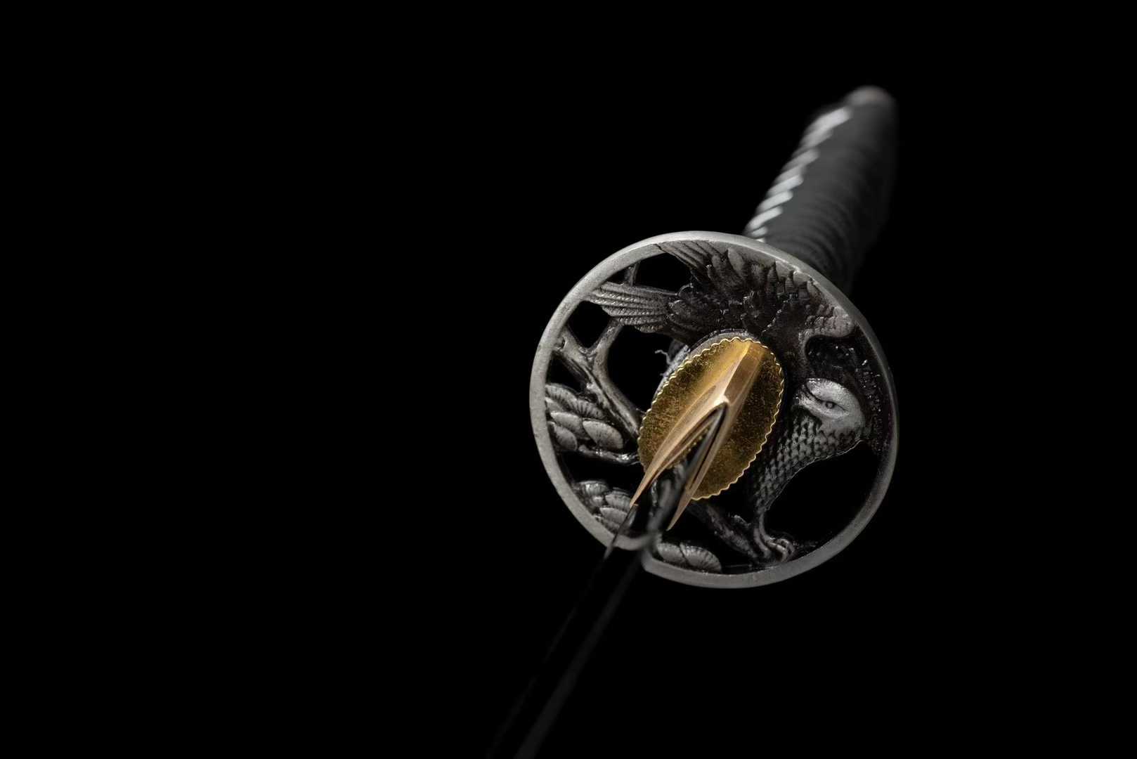 Kiếm Samurai "Ưng Nhãn" – Thép Hoa Văn Xử Lý Đen – 103cm