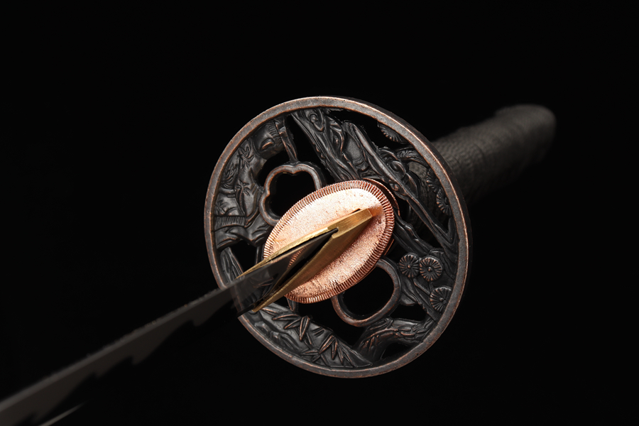 Chế tác thủ công: Lưỡi kiếm được mài thủ công với 20 bước tinh xảo, đạt độ sắc bén tối ưu, có thể dễ dàng chém qua hơn 30 chai nước khoáng, cắt rơm, dây thừng như dao cắt bơ.